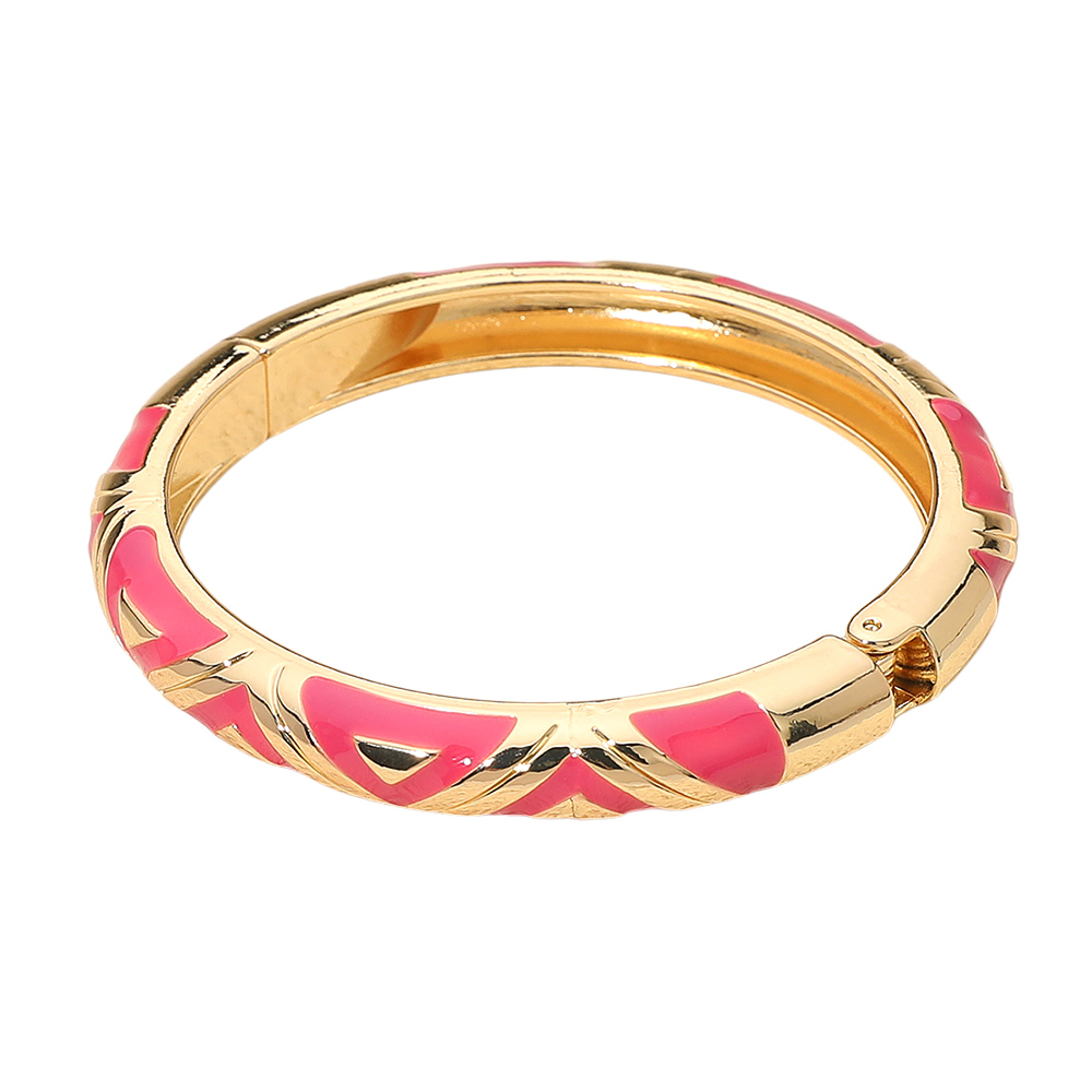 Geometric Pattern Enamel Inlay Hinged Bangle Bracelet