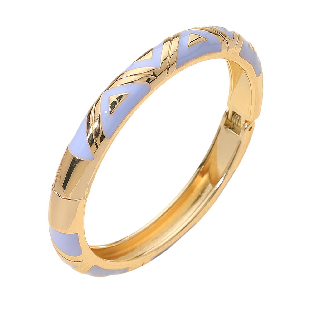 Geometric Pattern Enamel Inlay Hinged Bangle Bracelet
