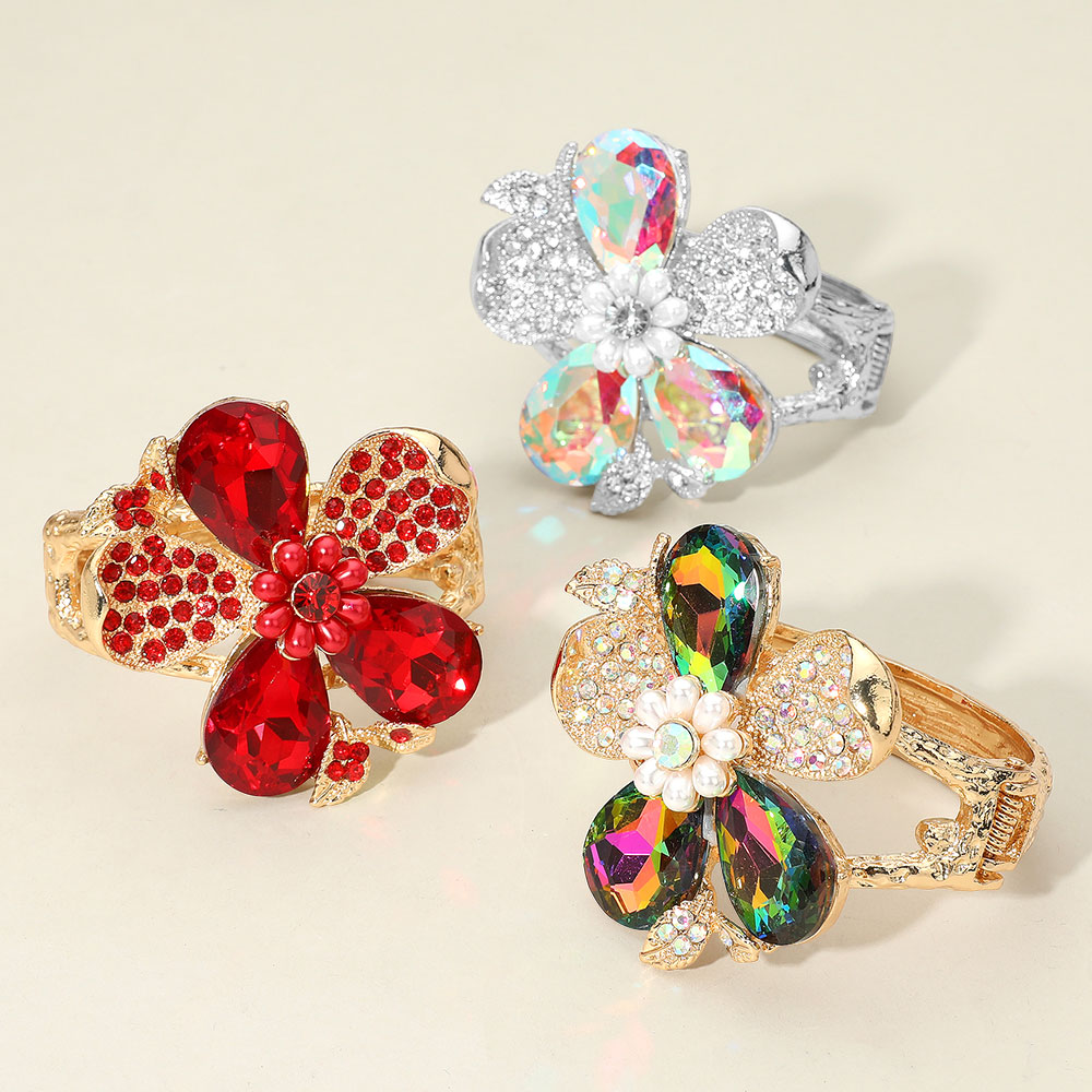 Details • Size : 2.4" H, 2.4" D • Hinged Closure • Bold floral statement ring featuring layered petal design with faceted accents and dimensional detailing. Created to deliver standout impact for everyday styling, special occasions, and gift-ready assortments. A trend-forward accessory ideal for boutiques seeking eye-catching rings with elegant shine and strong visual appeal. • Lead and Nickel Compliant