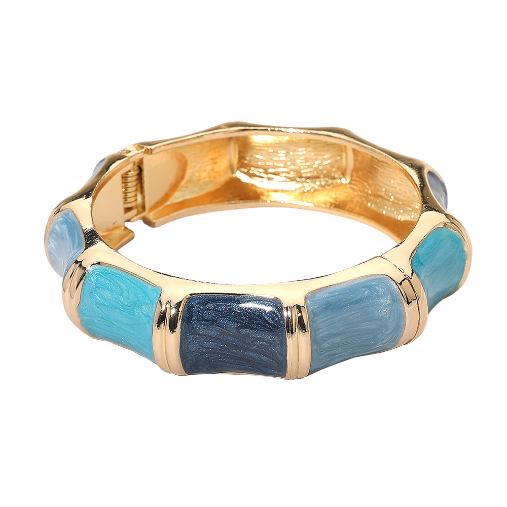 • Stylish enamel hinged bangle bracelet featuring a smooth wave-inspired bamboo shape with a glossy finish. The elegant segmented design adds a modern touch to any outfit, making it ideal for casual and dressy looks. Perfect accessory to elevate everyday or evening style.