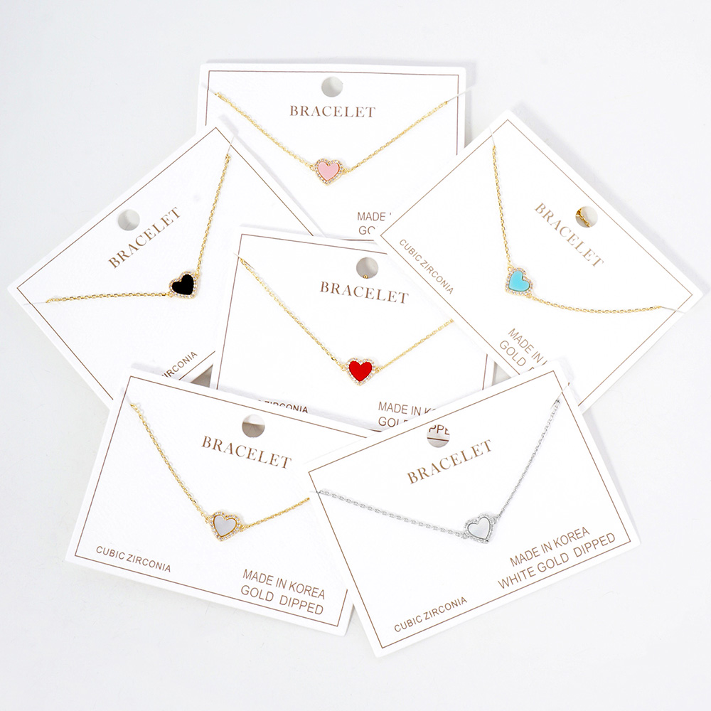 Gold Dipped CZ Stone Paved Rim Heart Charm Pointed Bracelet