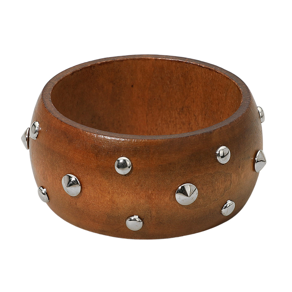 Metal Stud Embellished Wide Wooden Bangle Bracelet