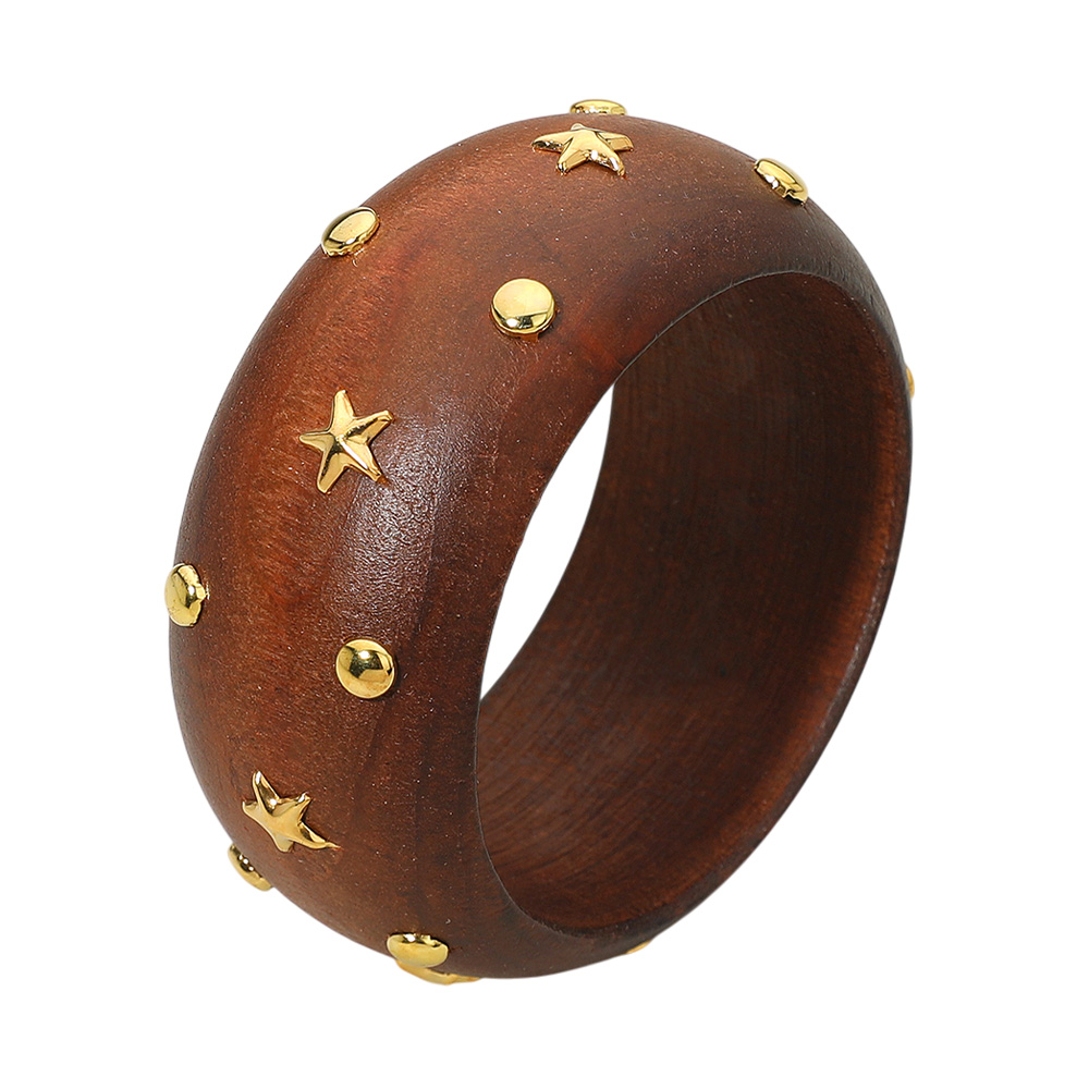 Metal Stud Embellished Wide Wooden Bangle Bracelet