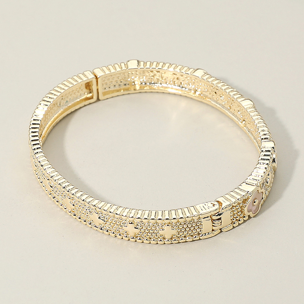 • Elevate your look with this elegant hinged bangle featuring delicate quatrefoil accents and shimmering crystal details. Its refined design offers timeless sophistication, making it perfect for both everyday wear and special occasions where a touch of sparkle is desired.