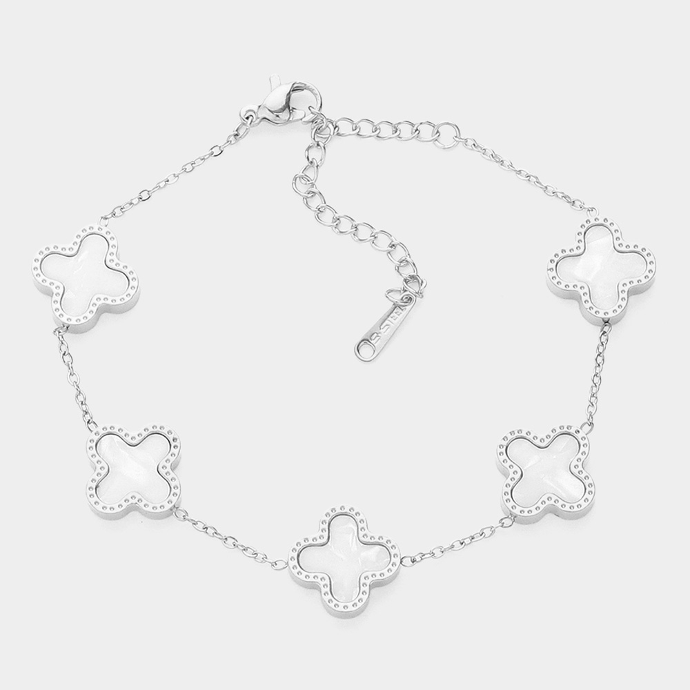 Mother Of Pearl Stainless Steel Quatrefoil Station Bracelet