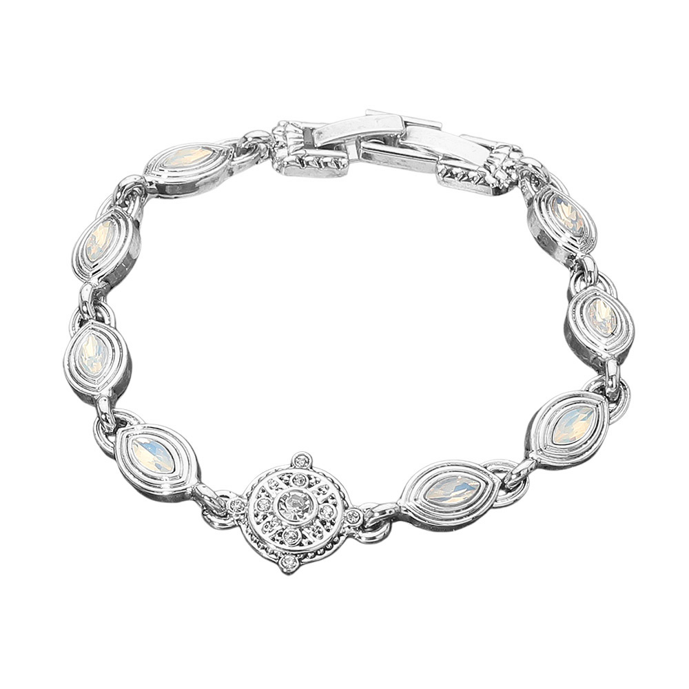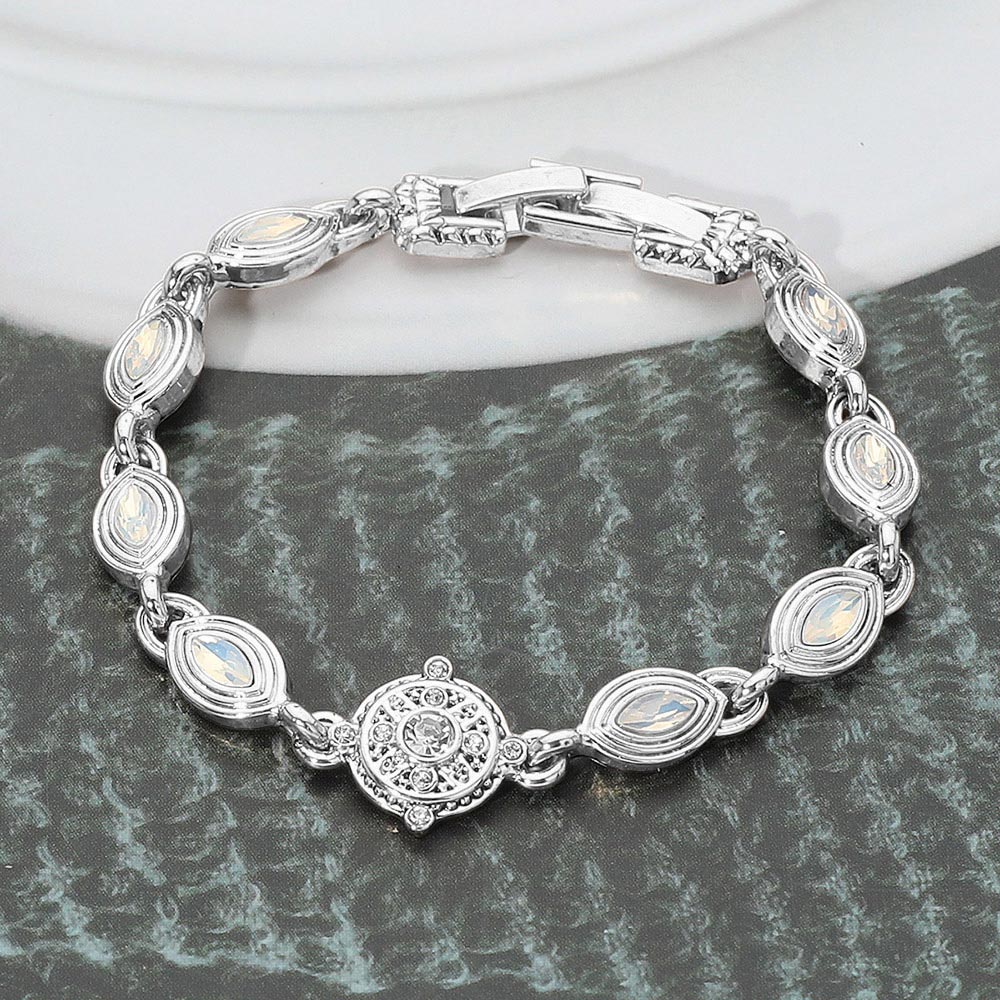 • A refined bracelet featuring marquise-shaped stones linked in a detailed, vintage-inspired design. The ornate center charm adds extra sparkle and sophistication. Perfect for daily wear, gifting, or pairing with other pieces for a timeless, elevated accessory style.