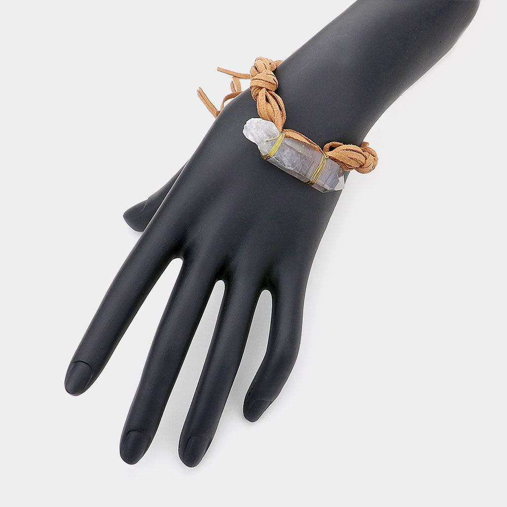 Leaf Twig Metal Bar Pointed Faux Suede Wrap Bracelet