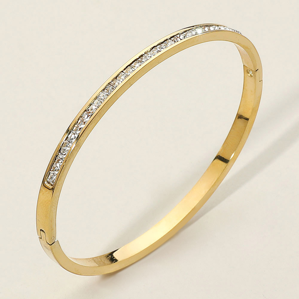 SECRET BOX_Stainless Steel Single Row Rhinestone Paved Hinged Bangle Bracelet