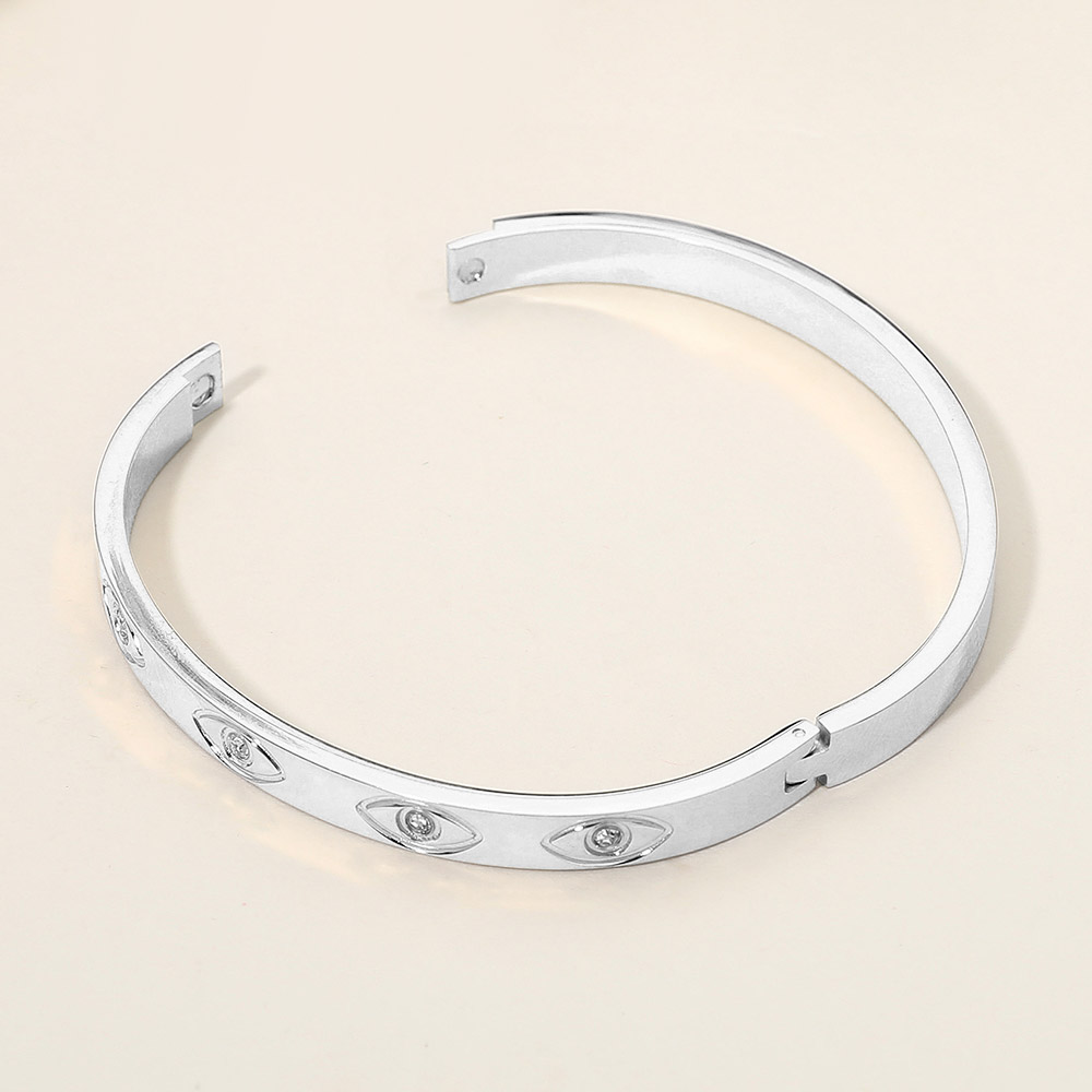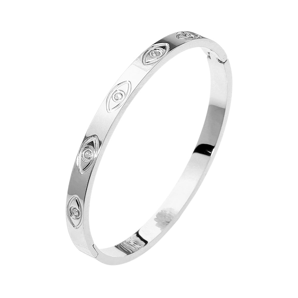 SECRET BOX_Stainless Steel Stone Accent Evil Eye Engraved Hinged Bangle Bracelet