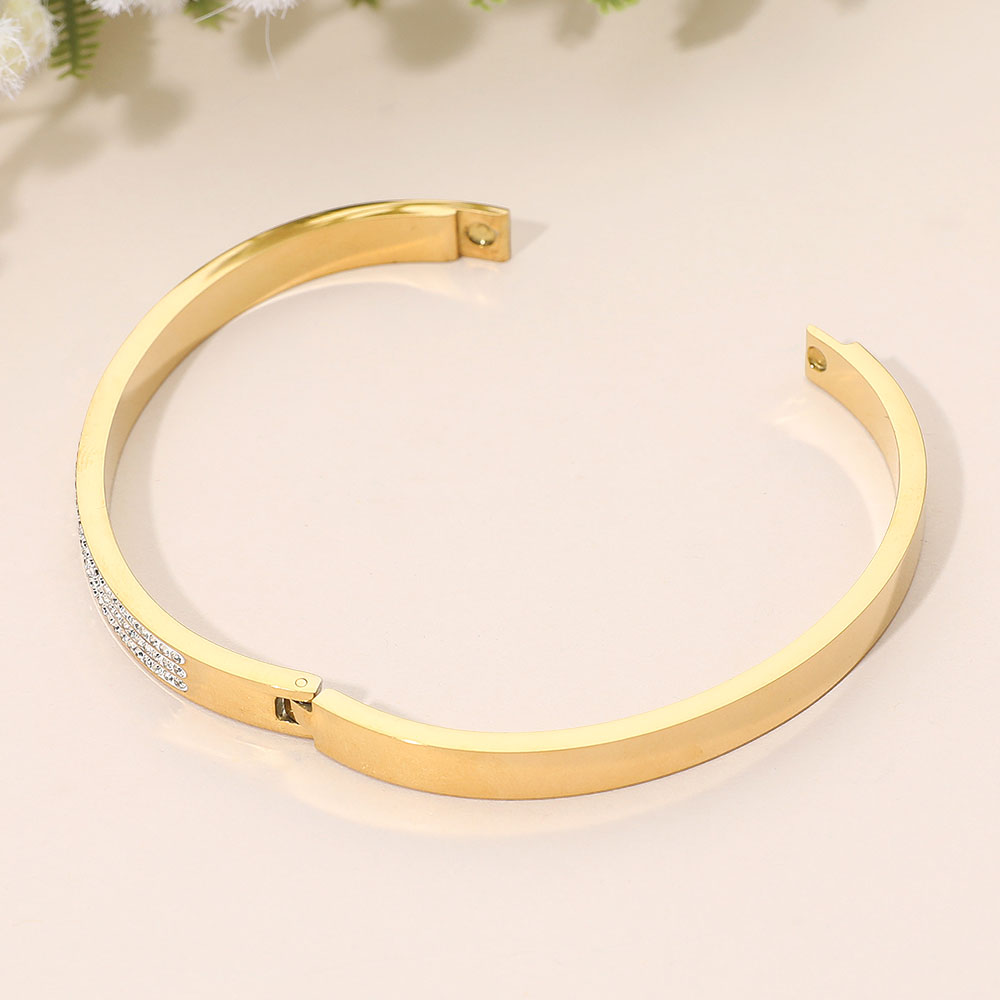 SECRET BOX_Stainless Steel Triple Row Stone Paved Hinged Bangle Bracelet