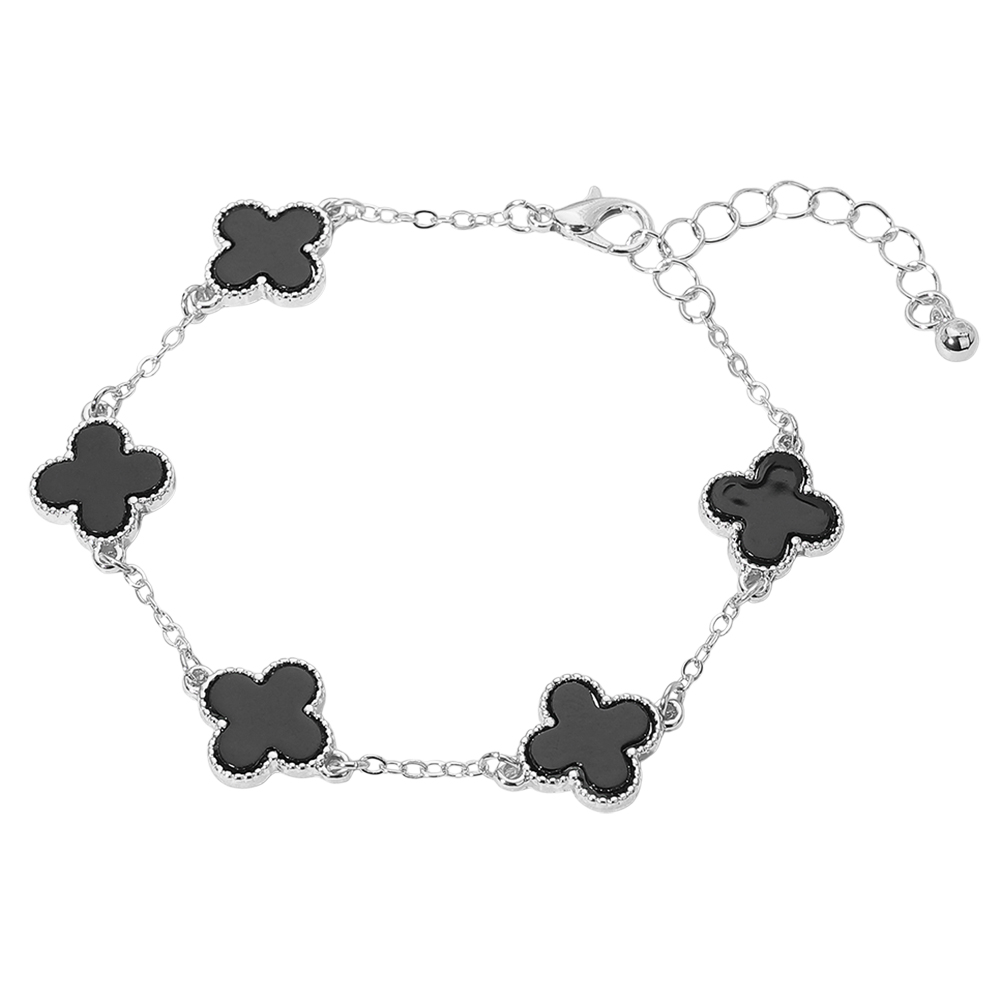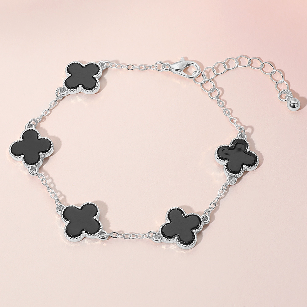• This elegant four-leaf cquatrefoil chain bracelet features five delicate charms linked by a fine adjustable chain, symbolizing luck and beauty. Its refined design blends timeless sophistication with a modern edge, making it an ideal accessory for both daily wear and special occasions.
