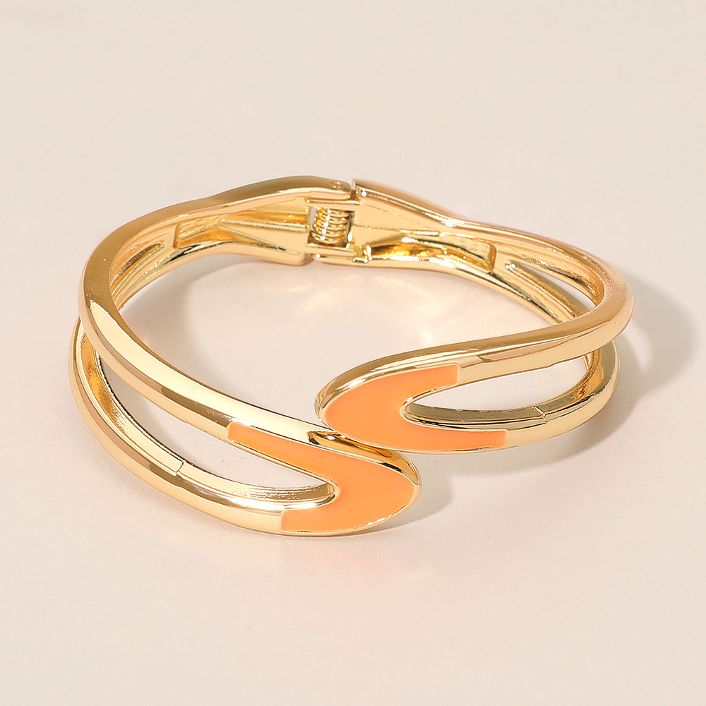 Details • Size : 0.8" H, 2.4" D • Hinged Closure • Elevate your accessories with this modern enamel cuff bracelet featuring a sleek open design and bold detailing. Perfect for adding a chic statement to casual or evening outfits, this bracelet blends contemporary style with timeless elegance for versatile wear.