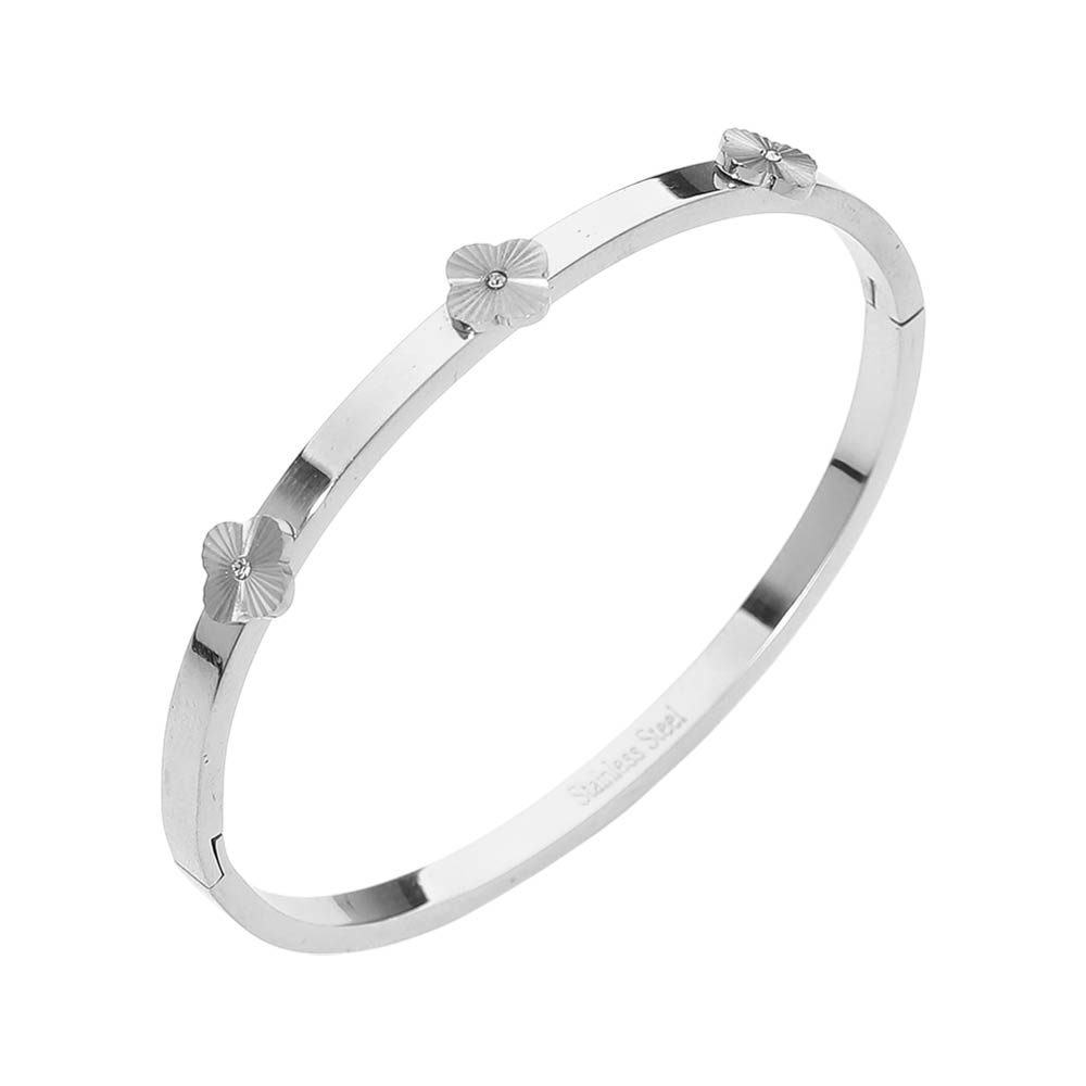Stainless Steel CZ Center Quatrefoil Station Hinged Bangle Bracelet Stainless Steel CZ Center Quatrefoil Station Hinged Bangle Bracelet Stainless Steel CZ Center Quatrefoil Station Hinged Bangle Bracelet Stainless Steel CZ Center Quatrefoil Station Hinged Bangle Bracelet