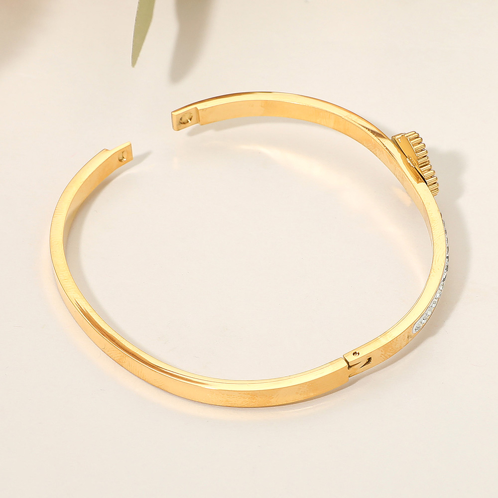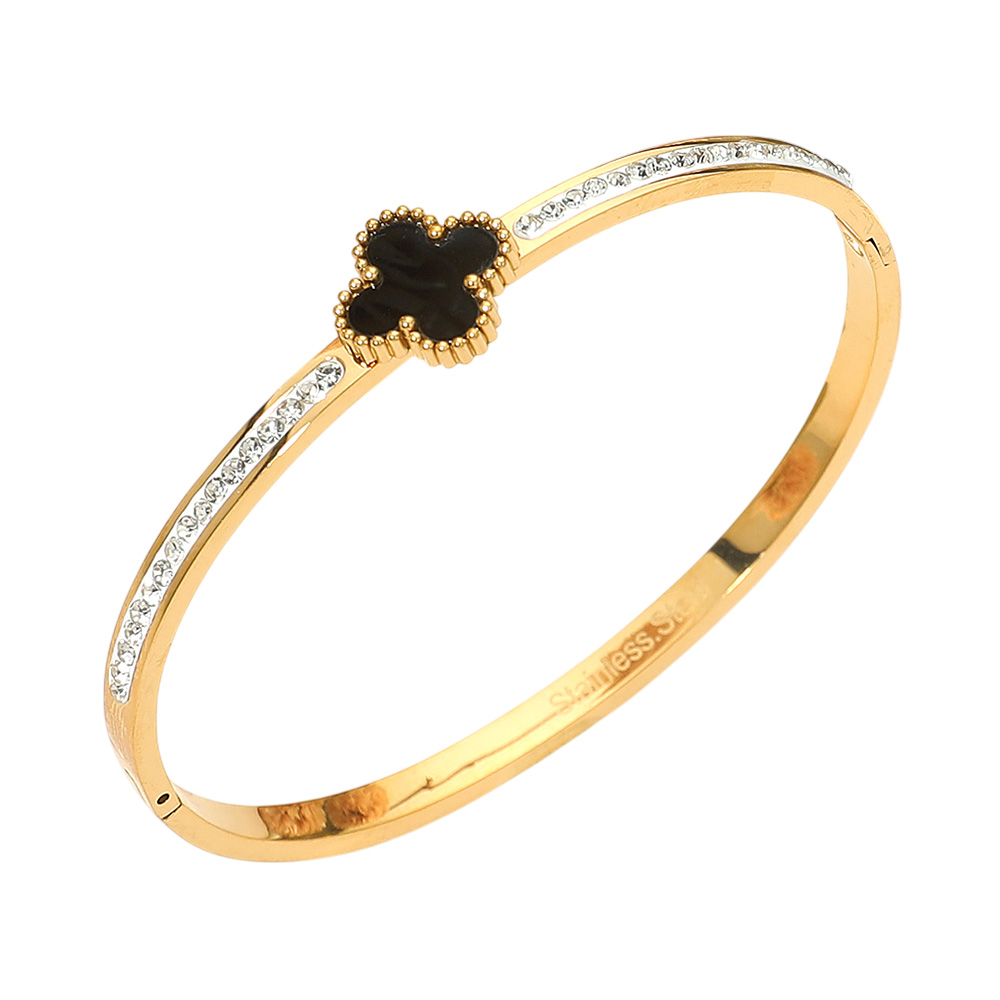 Stainless Steel CZ Paved Quatrefoil Center Hinged Bangle Bracelet Stainless Steel CZ Paved Quatrefoil Center Hinged Bangle Bracelet Stainless Steel CZ Paved Quatrefoil Center Hinged Bangle Bracelet