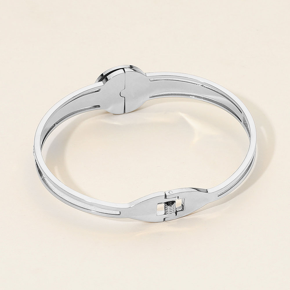 • This elegant bangle features a symbolic protective charm encircled by sparkling crystal accents. Designed with a sleek, modern silhouette, it combines meaning and sophistication, making it a perfect accessory for both daily wear and special occasions.