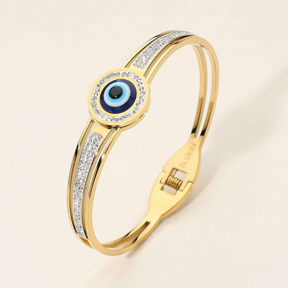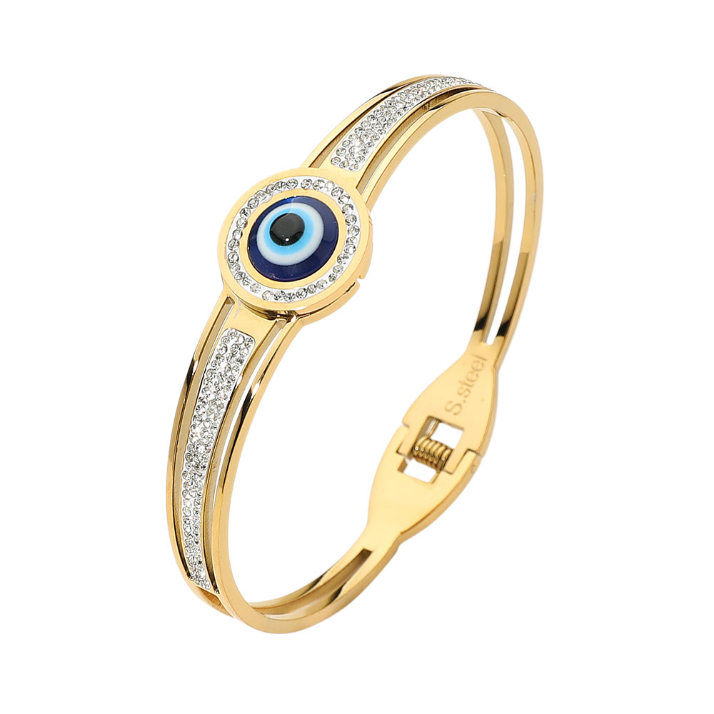 Stainless Steel CZ Stone Paved Evil Eye Accent Hinged Bangle Bracelet Stainless Steel CZ Stone Paved Evil Eye Accent Hinged Bangle Bracelet Stainless Steel CZ Stone Paved Evil Eye Accent Hinged Bangle Bracelet