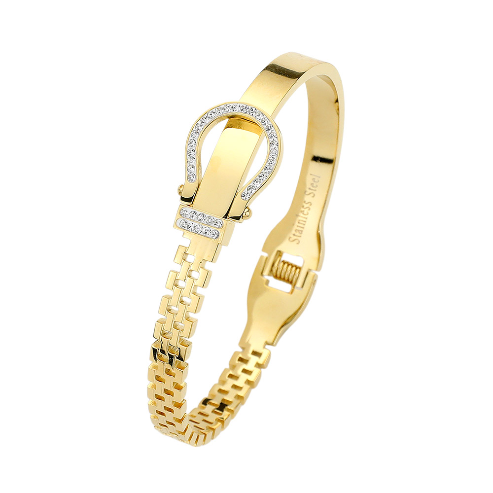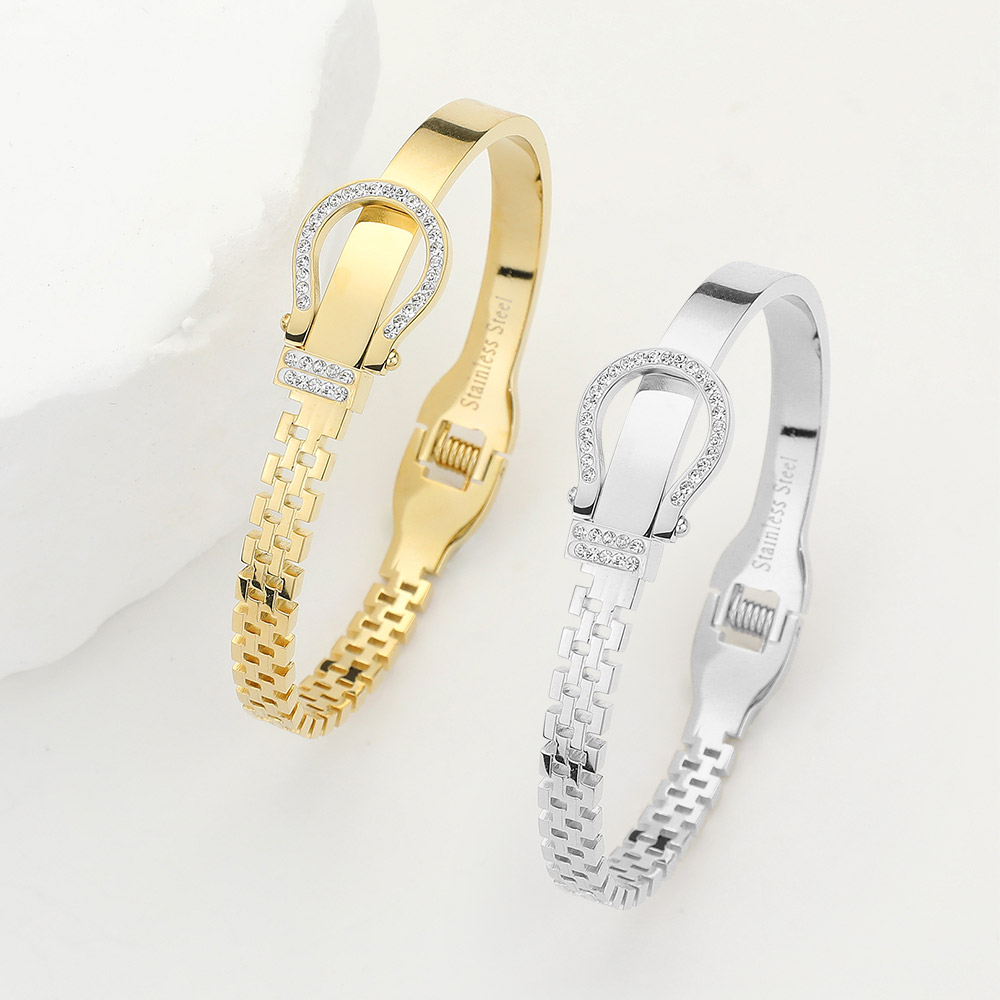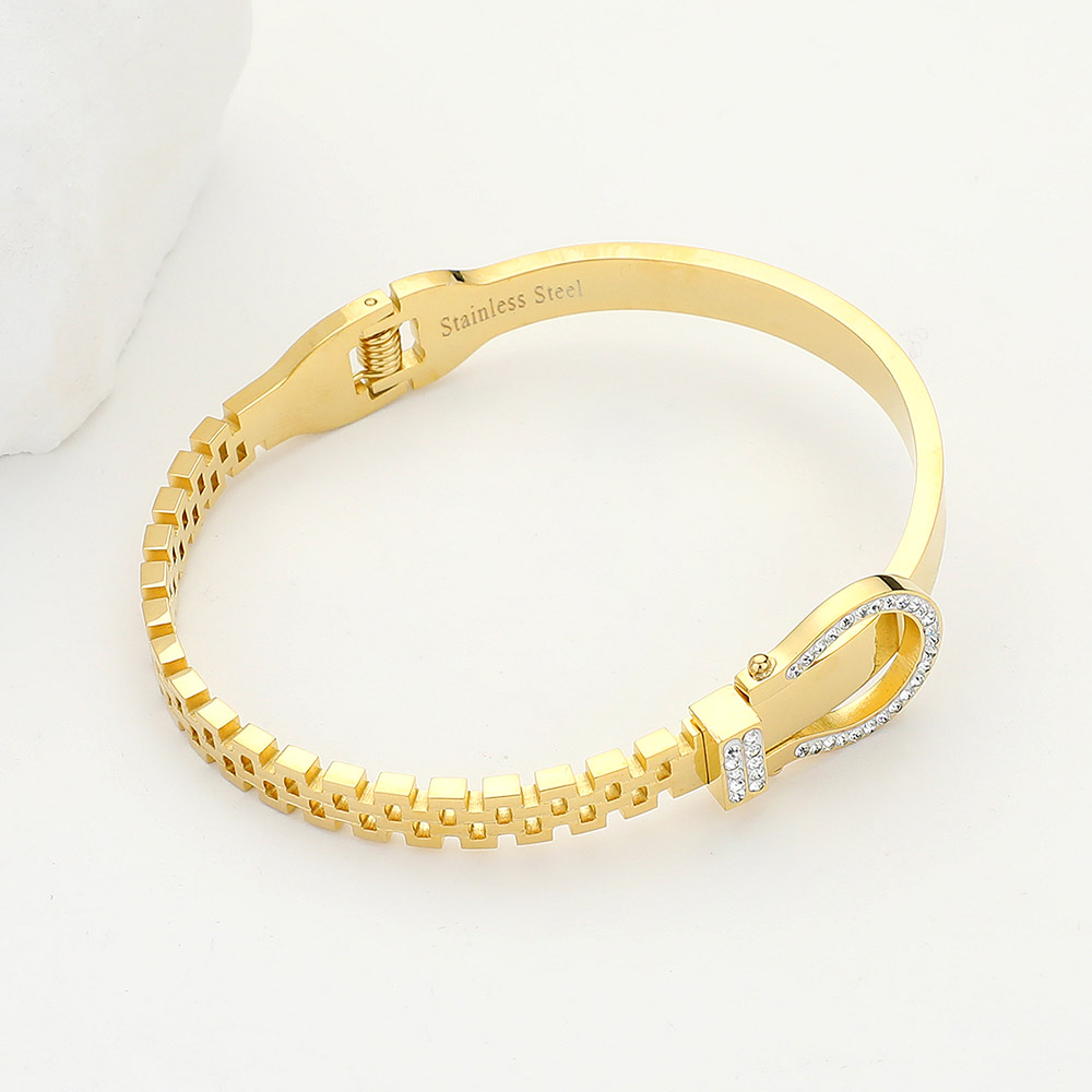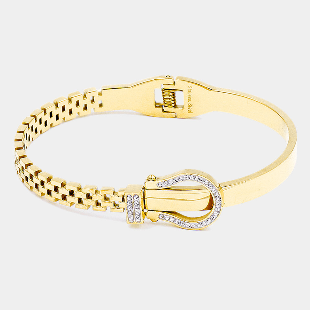 Stainless Steel Rhinestone Embellished Belt Buckle Hinged Bangle Bracelet