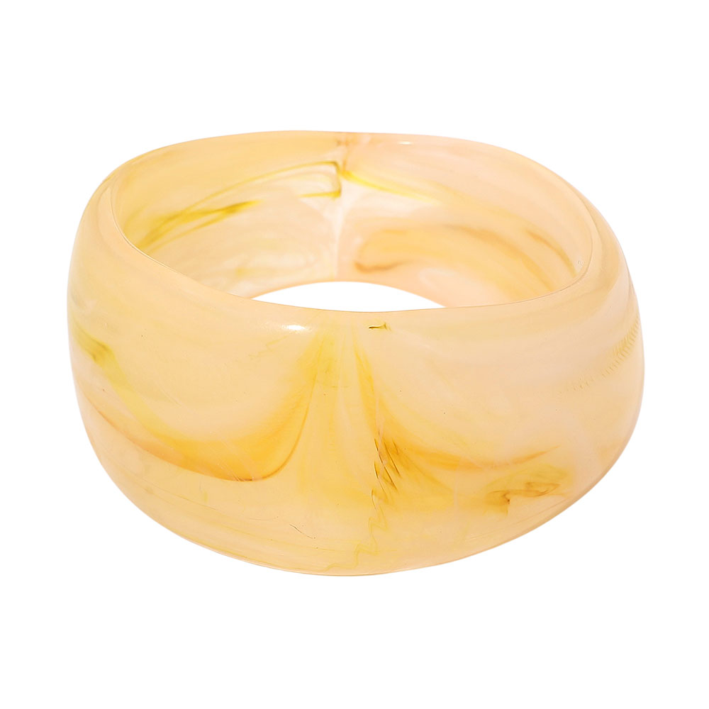 Details • Size : 1.7" H, 2.5" D • Sculptural wide bangle designed to elevate everyday looks with effortless impact. Its smooth silhouette slips on comfortably and layers beautifully with other pieces or stands alone as a standout accessory for casual wear, work outfits, or evening styling.