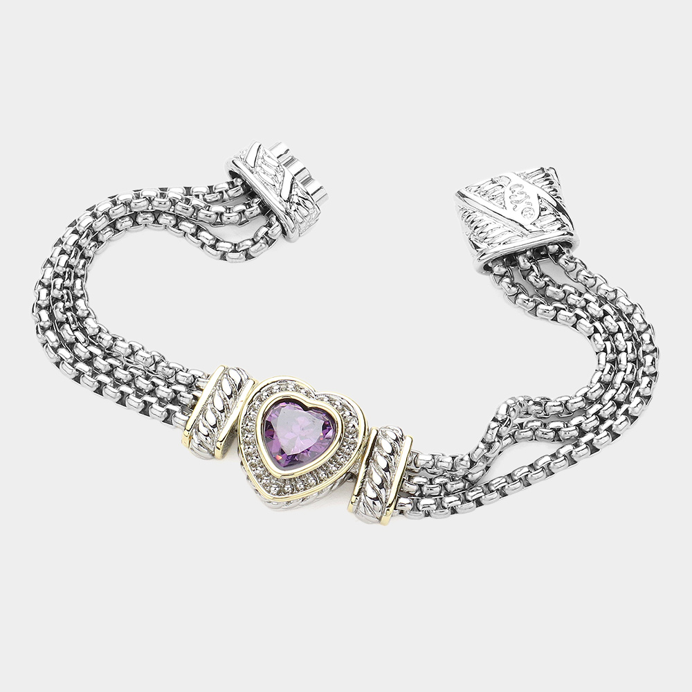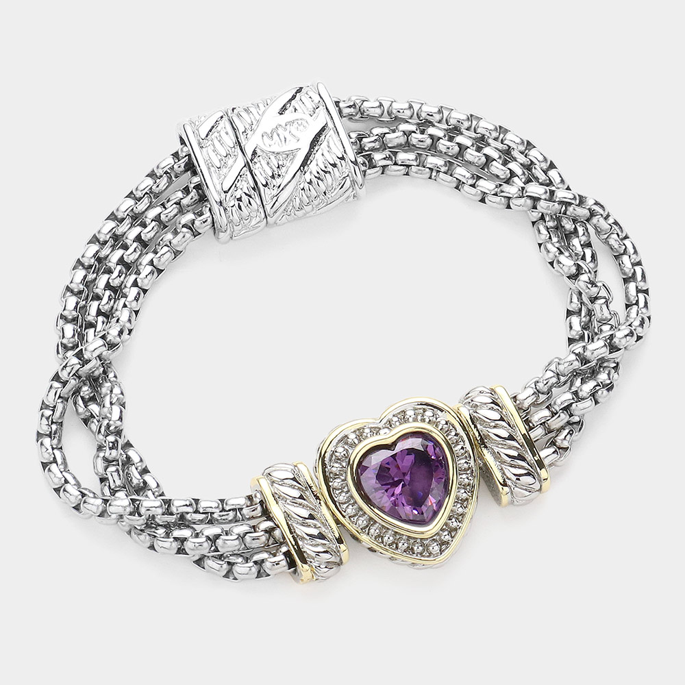 • Chic multi-strand bracelet with a heart-shaped centerpiece embellished with sparkling accents. Designed with a secure magnetic clasp, this elegant bracelet adds a stylish touch to everyday wear and special occasions.