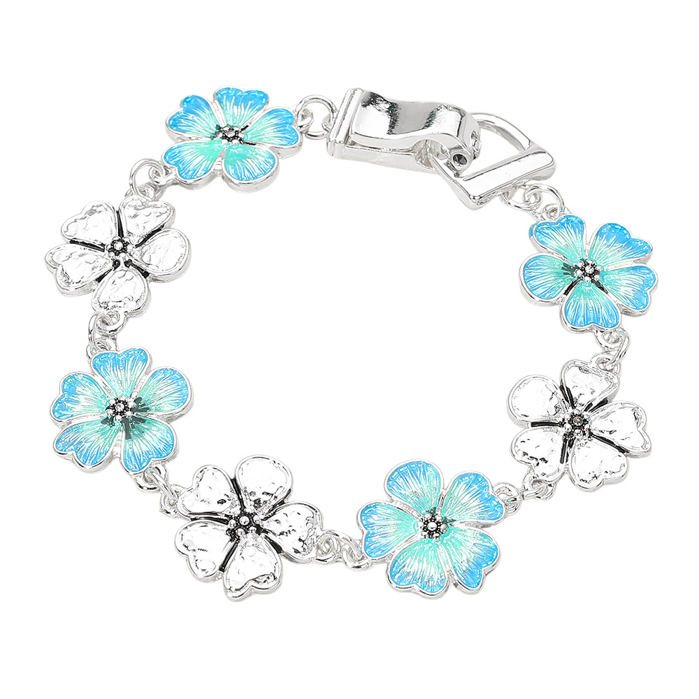 • Elegant floral charm bracelet featuring linked flower accents and a secure magnetic clasp. Designed with sculpted petal details and a polished finish, this bracelet adds a graceful touch to everyday outfits, gifting collections, and seasonal accessory assortments with effortless wear appeal.