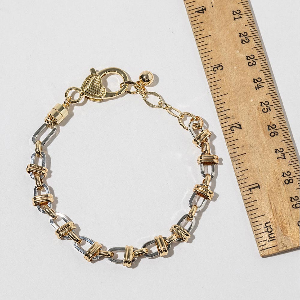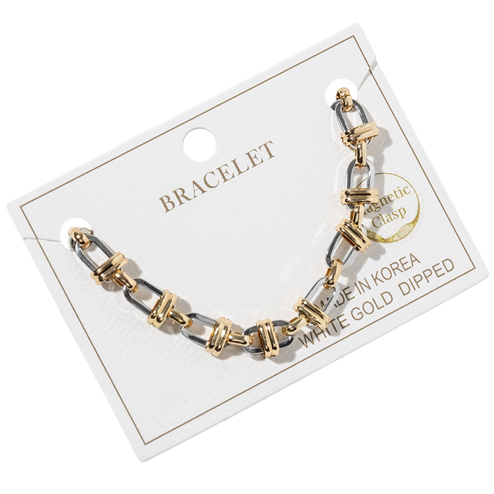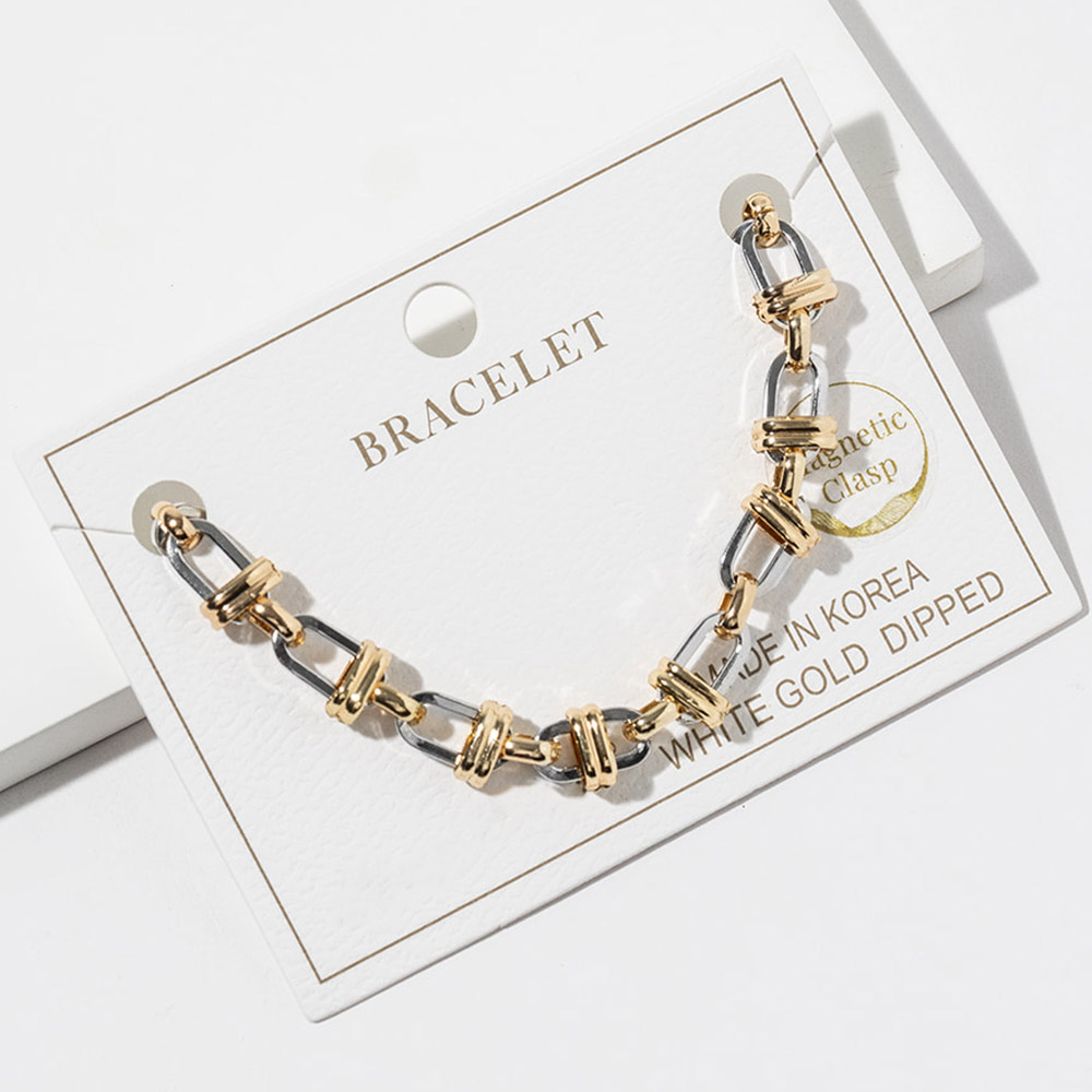 Details • Size : 0.25" H, 8" + 1" L • Magnetic Closure • Bold link bracelet designed with a convenient magnetic clasp for quick, secure wear. Features layered interlocking links that create a modern statement look while remaining easy to style alone or stacked. Ideal for daily wear, gifting, and boutique jewelry collections seeking trendy, functional accessories. • Gold Dipped • Lead and Nickel Compliant • Made In Korea