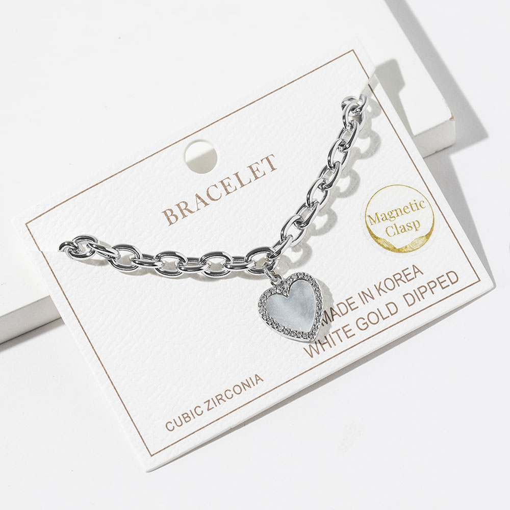 White Gold Dipped CZ Stone Rim Mother of Pearl Heart Charm Magnetic Chain Bracelet White Gold Dipped CZ Stone Rim Mother of Pearl Heart Charm Magnetic Chain Bracelet White Gold Dipped CZ Stone Rim Mother of Pearl Heart Charm Magnetic Chain Bracelet White Gold Dipped CZ Stone Rim Mother of Pearl Heart Charm Magnetic Chain Bracelet