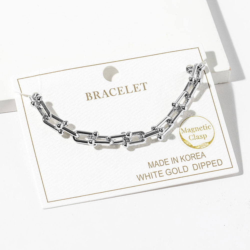 White Gold Dipped Industrial Link Chain Bracelet White Gold Dipped Industrial Link Chain Bracelet White Gold Dipped Industrial Link Chain Bracelet White Gold Dipped Industrial Link Chain Bracelet