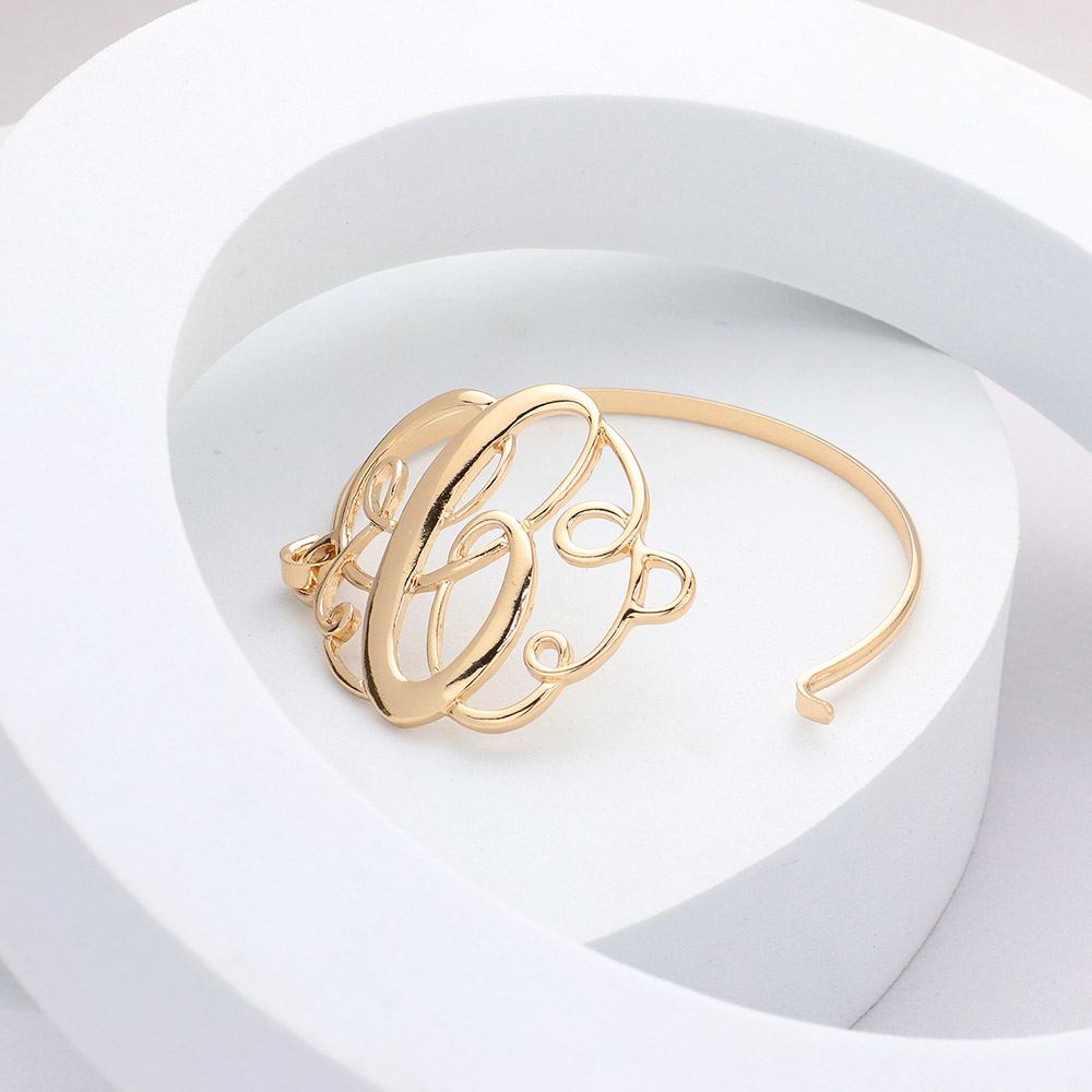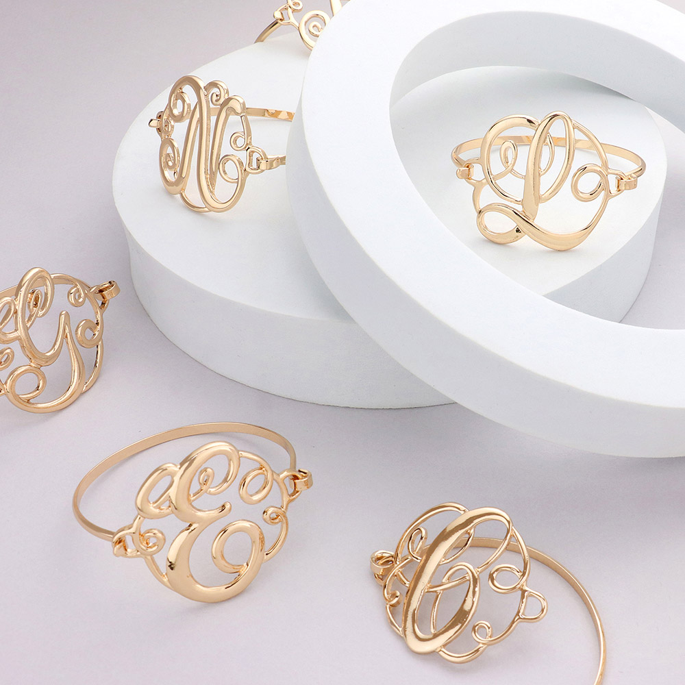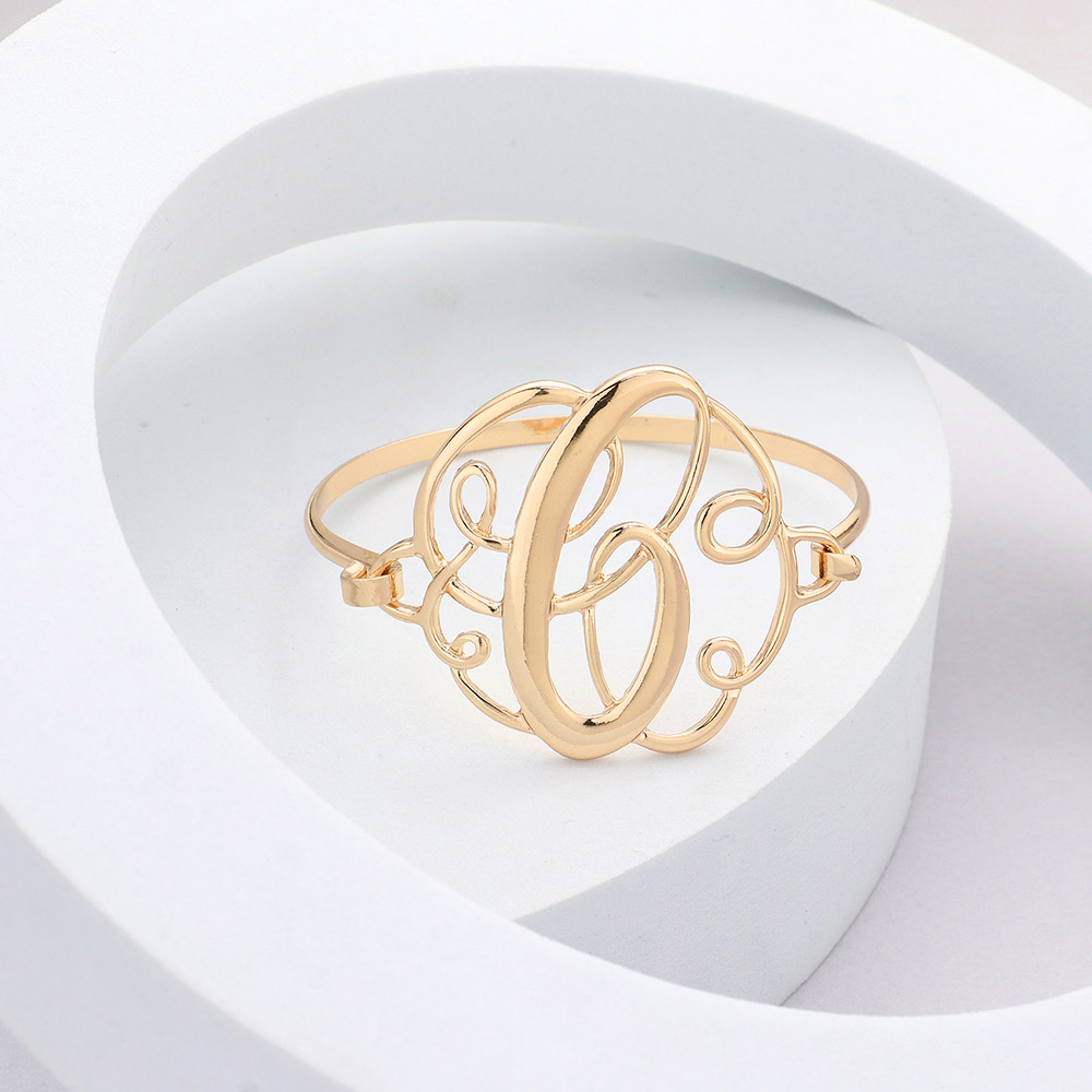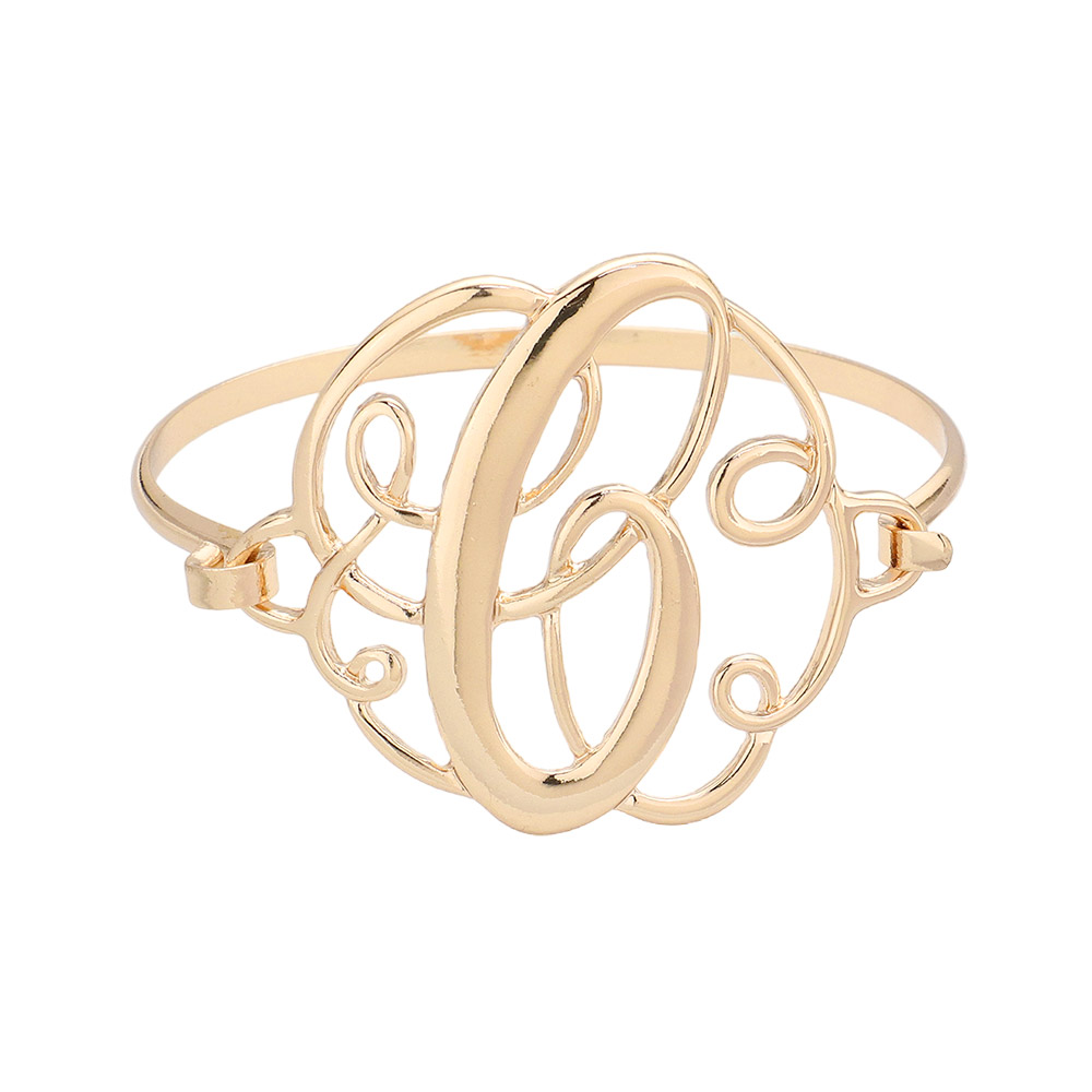 -E- Acrylic Initial Monogram Metal Disc Hook Bracelet