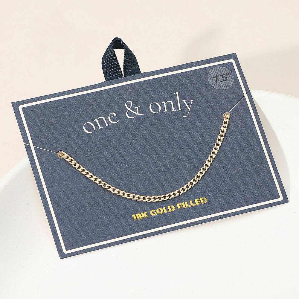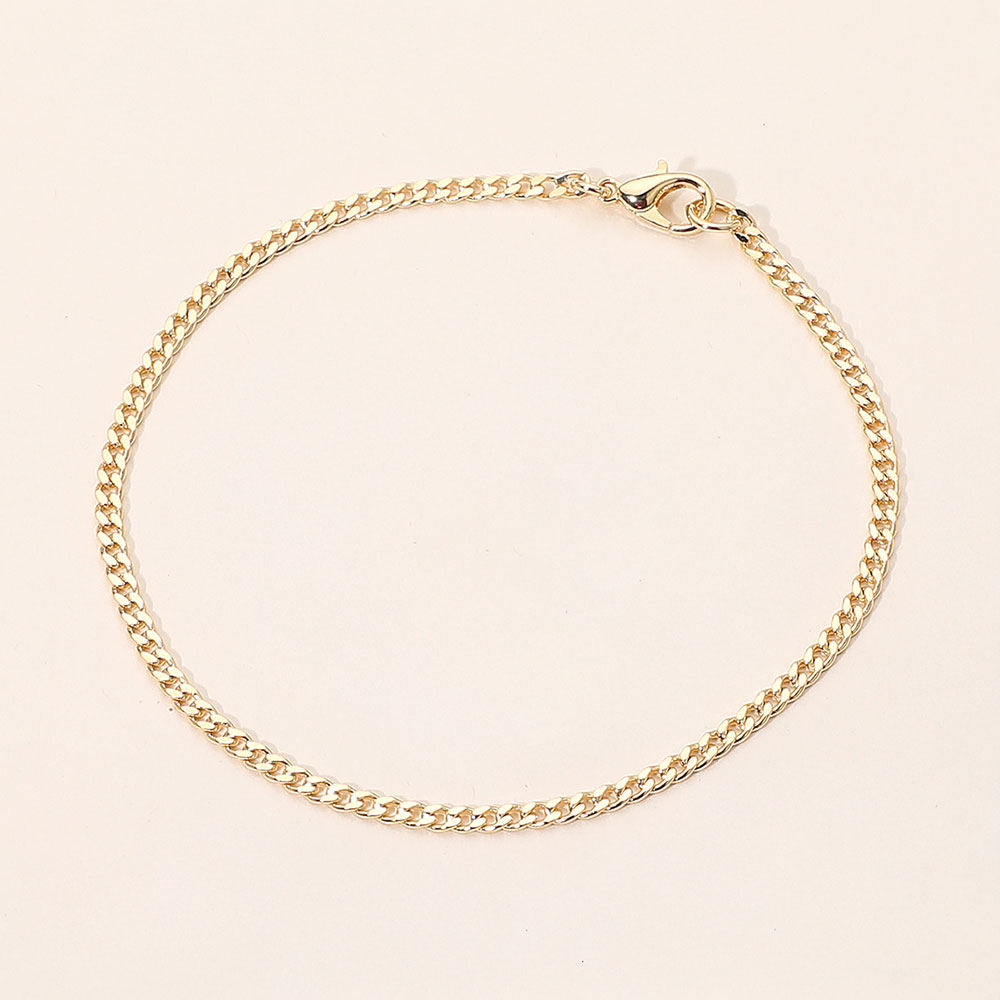 Details • Size : 0.1" H (2mm), 7.5" L • Lobster Clasp • Timeless Cuban chain bracelet featuring smooth flat links with a sleek polished shine. Its classic design offers effortless sophistication, perfect for daily wear or layering with other pieces. A versatile accessory that adds a refined touch to any modern or classic look. • Lead and Nickel Compliant • Gold Filled • Made In Brazil