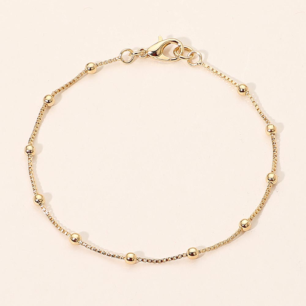 Details • Size : 0.1" H (2mm), 6.5" L • Lobster Clasp Closure • Refined beaded station chain bracelet featuring evenly spaced polished beads on a delicate link chain. A timeless accessory that adds understated elegance to any outfit, perfect for layering or wearing alone for a minimal yet sophisticated look. • Gold Filled • Lead and Nickel Compliant • Made In Brazil