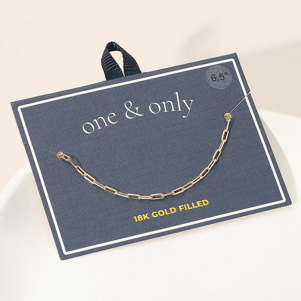 • Elegant chain bracelet featuring a minimalist link design for timeless sophistication. Lightweight and versatile, it’s perfect for layering or wearing alone. Presented on a “one & only” card for effortless gifting and everyday elegance.