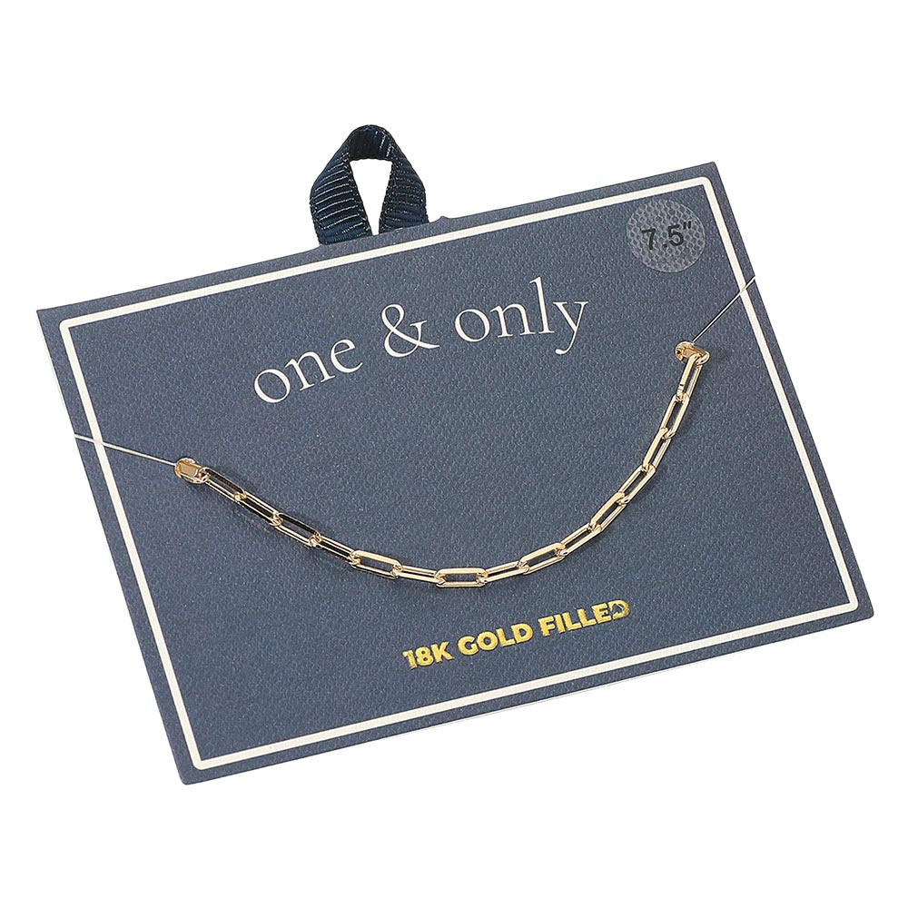 • Elegant chain bracelet featuring a minimalist link design for timeless sophistication. Lightweight and versatile, it’s perfect for layering or wearing alone. Presented on a “one & only” card for effortless gifting and everyday elegance.