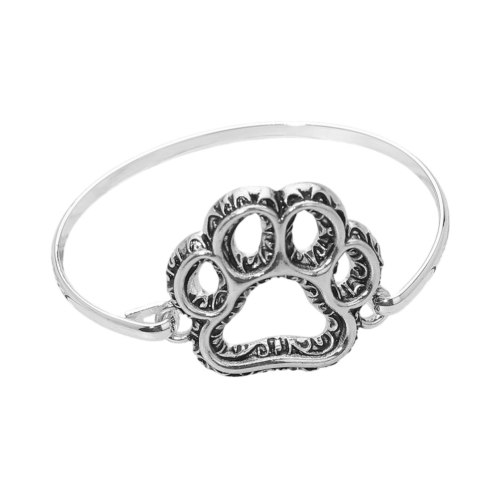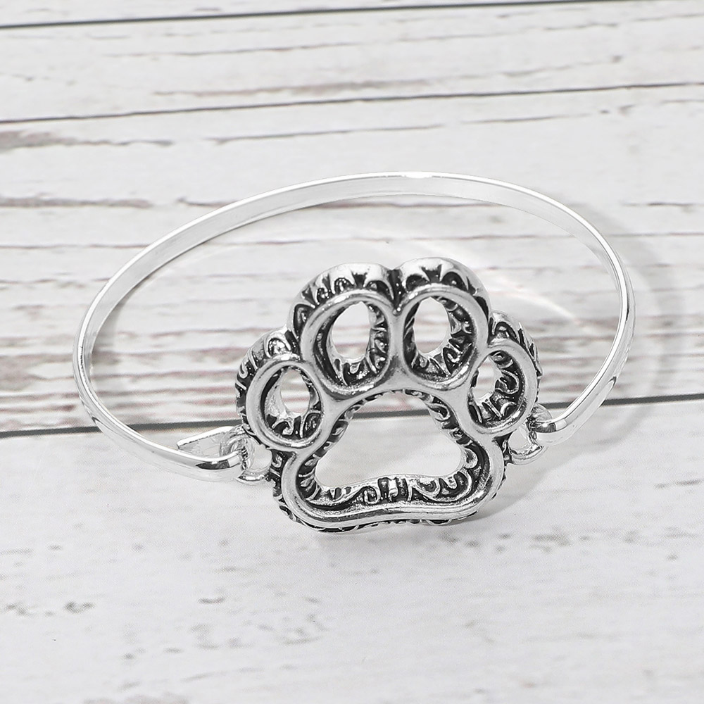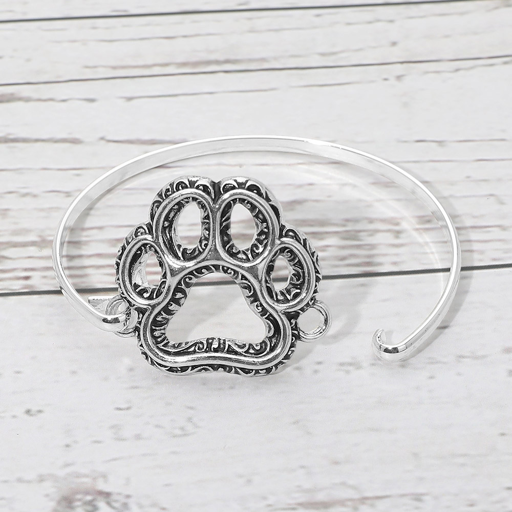 • This open cuff bracelet showcases a detailed paw print design that celebrates love for pets and animal-inspired style. The sleek bangle silhouette offers easy wear and a comfortable fit, making it ideal for everyday outfits or heartfelt gifting. A meaningful accessory that resonates with pet lovers and adds symbolic charm to boutique jewelry collections.