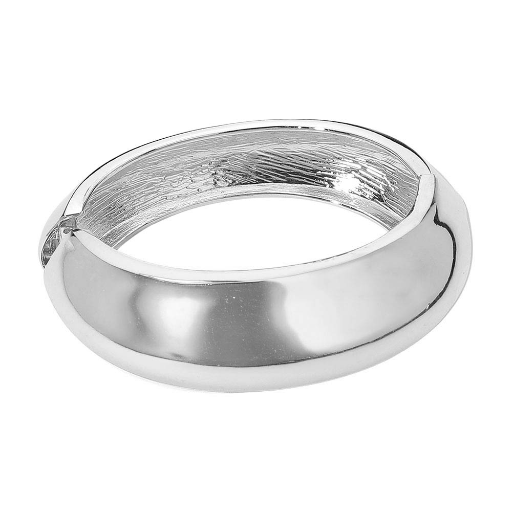 Details • Size : 1.25" H, 2.3" D • Hinged Closure • Chic dome-style cuff bracelet featuring a smooth, high-shine finish and bold rounded shape. Designed for effortless elegance, this statement piece adds a touch of sophistication to any outfit, perfect for both casual wear and formal occasions. • Lead and Nickel Compliant