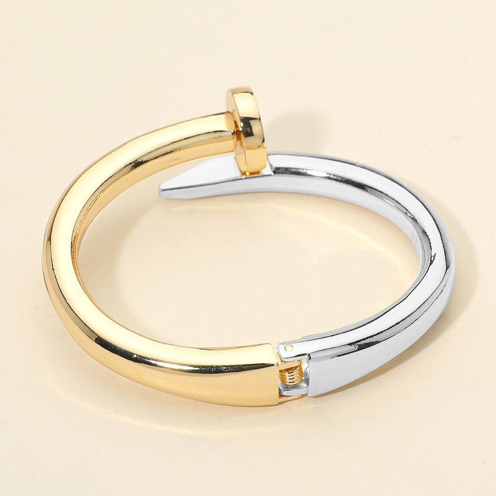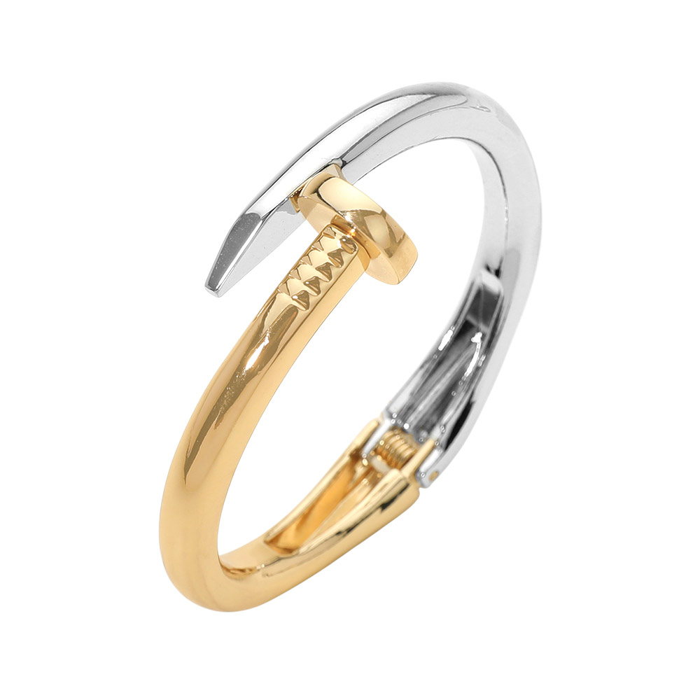 Details • Size : 0.8" H, 2.4" D • Hinged Closure • Statement nail inspired bracelet featuring a sleek open hinge design with sculptural curves. Modern and fashion forward, this bracelet adds an edgy yet refined accent to everyday outfits, workwear styling, and trend driven accessory collections. • Lead and Nickel Compliant