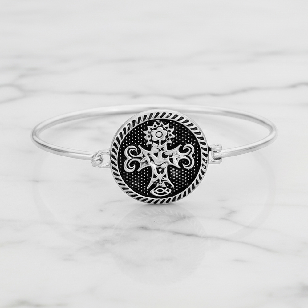 Metal Cross Accented Triple Layered Semi Precious Stretch Bracelet
