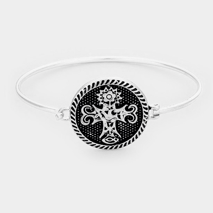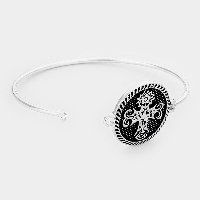 Oversized Stone Embellished Cross Pendant Accented Abstract Metal Wire Statement Necklace