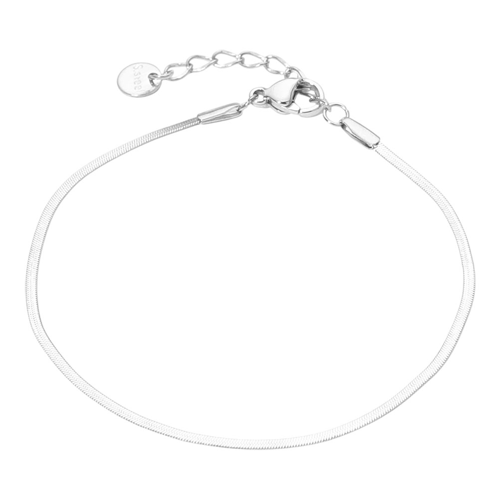 • Sleek flat chain bracelet designed with a smooth, streamlined profile for effortless everyday styling. Its minimalist silhouette layers easily with other pieces or stands alone for a refined look, making it ideal for stacking, gifting, and versatile fashion jewelry collections.