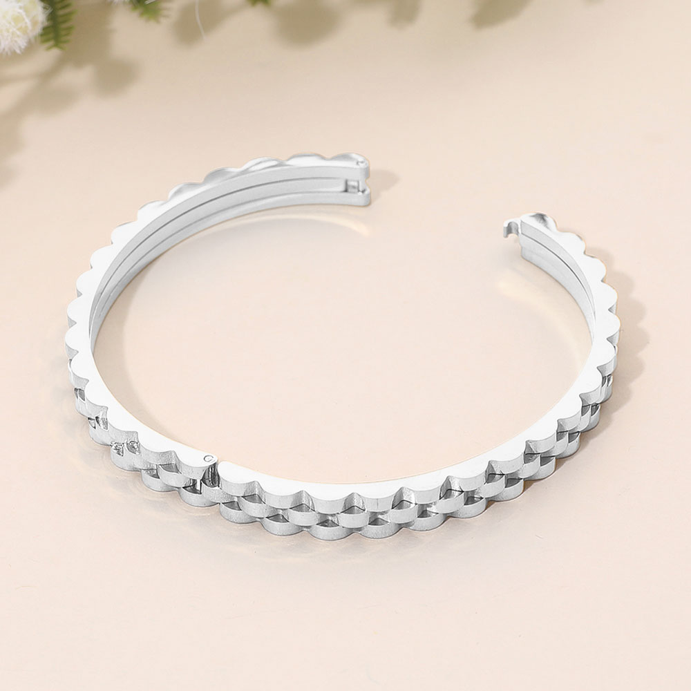 SECRET BOX_Stainless Steel Textured Chain Link Hinged Bangle Bracelet