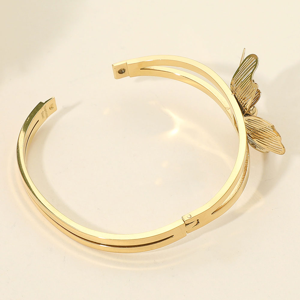 Details • Size : 1.25" H, 2.3" D • Hinged Closure • Elegant hinged bracelet featuring a sculpted floral design that adds dimension and refined style to any look. The hinged opening allows easy on and off while maintaining a secure, comfortable fit. A standout accessory ideal for boutique displays, gift selections, and fashion-forward collections seeking timeless yet distinctive appeal. • Stainless Steel