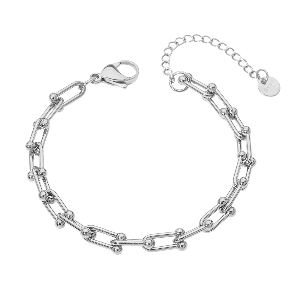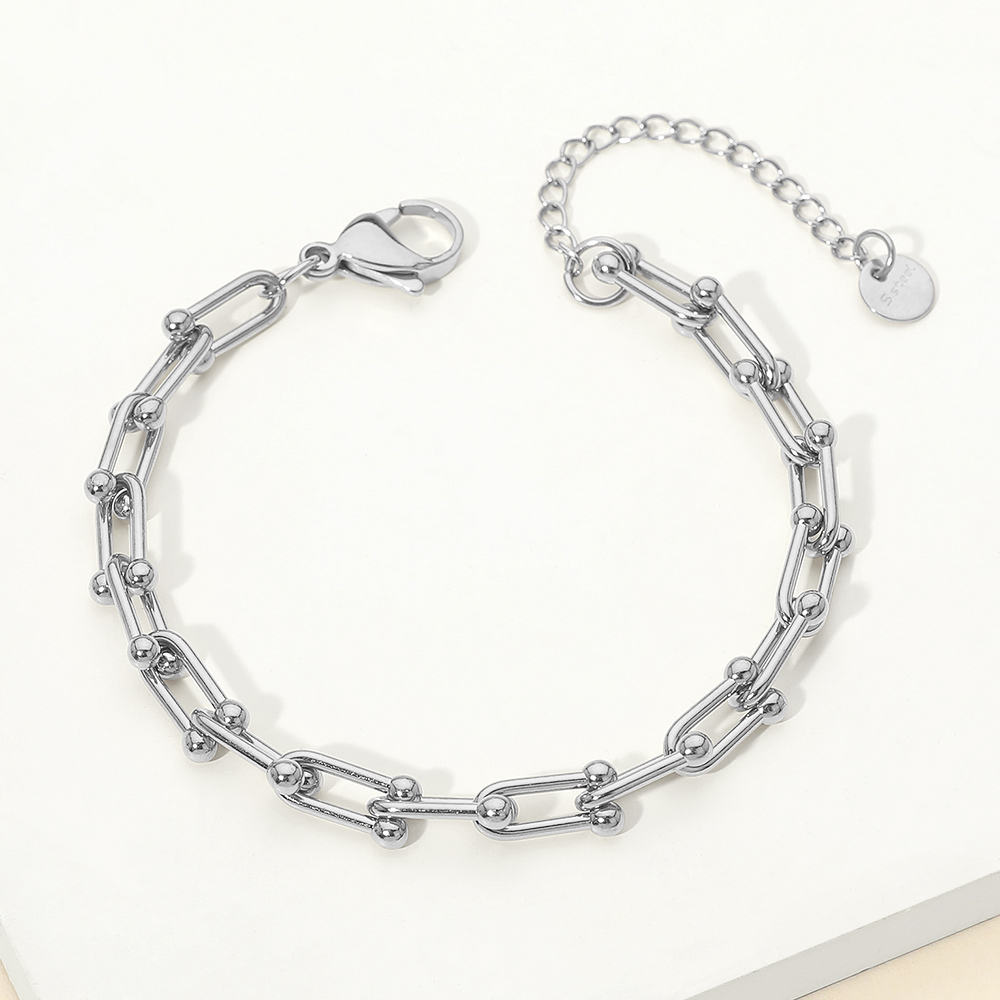 • This stainless steel industrial link chain bracelet features a sleek, structured design accented with subtle rounded details for added dimension. Designed for everyday wear, it offers a refined statement that pairs effortlessly with casual or elevated looks. Perfect for stacking or wearing solo, it brings a clean, contemporary touch to any jewelry assortment.
