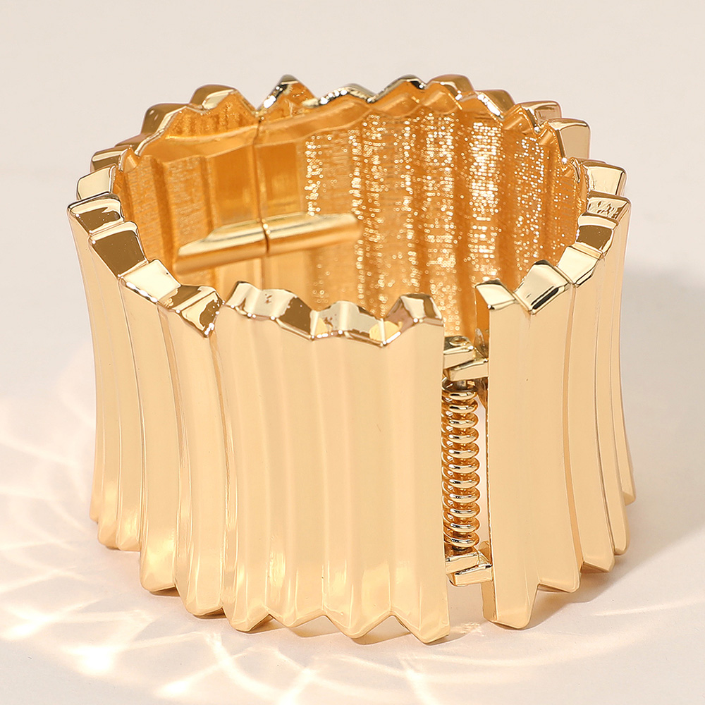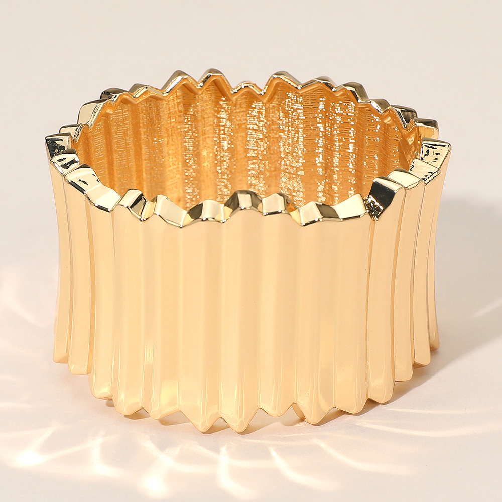 • Upgrade your accessory collection with this wide pleated bangle bracelet featuring a sleek, modern design. Perfect for adding sophistication to both casual and formal looks, this bold statement piece brings elegance and contemporary flair to any outfit.