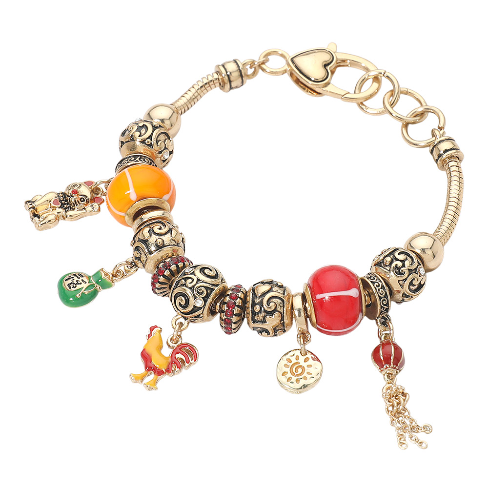 Cat Lucky Bag Rooster Sun Chain Charm Multi Bead Bracelet Cat Lucky Bag Rooster Sun Chain Charm Multi Bead Bracelet