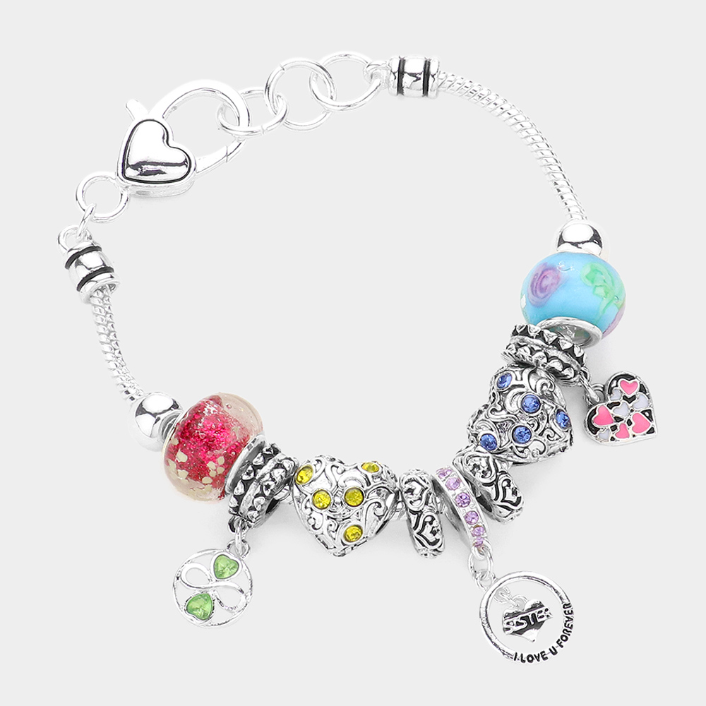 Infinity Heart Sister I Love U Forever Message Charm Multi Bead Bracelet