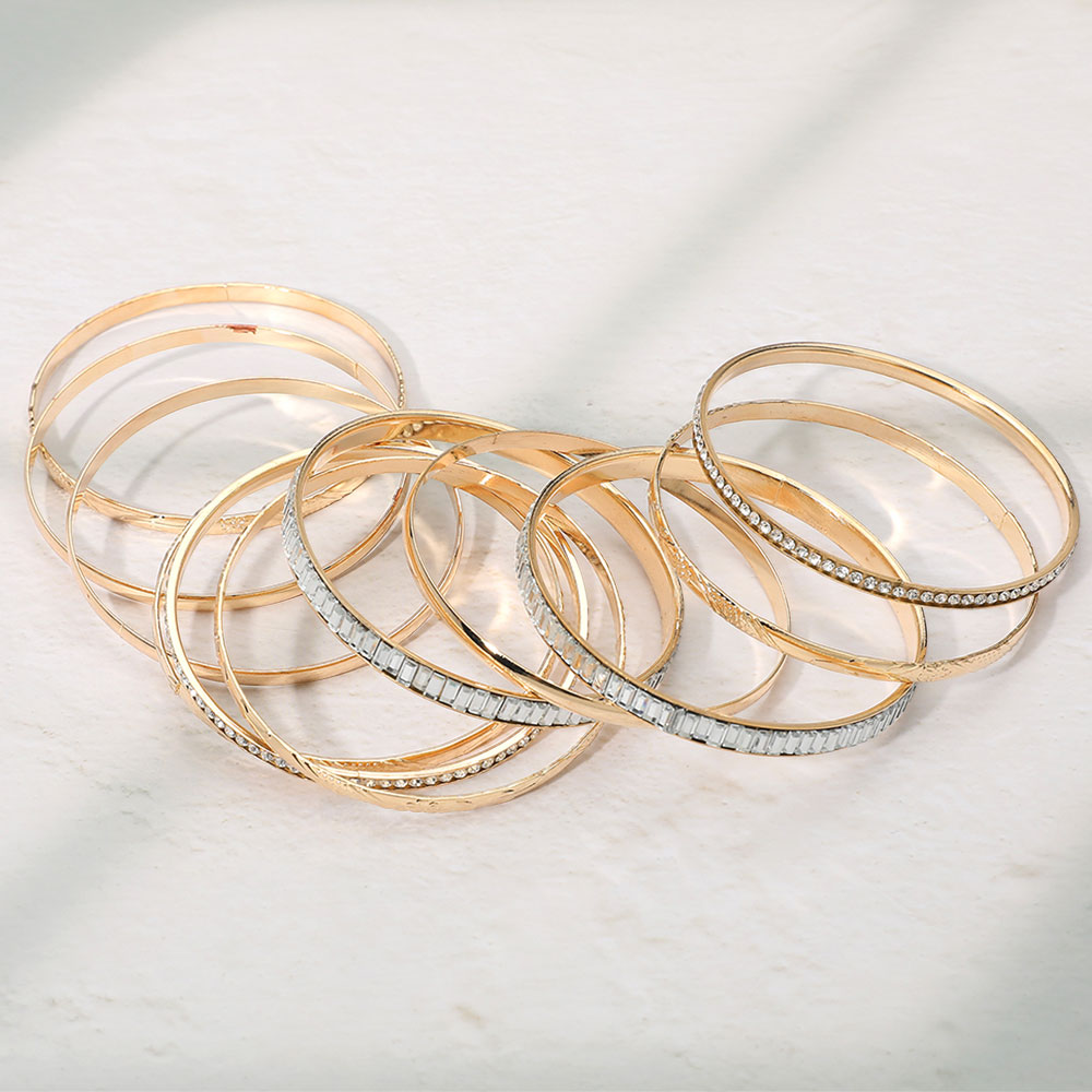 11PCS - Rhinestone Accented Multi Layered Bangle Bracelets