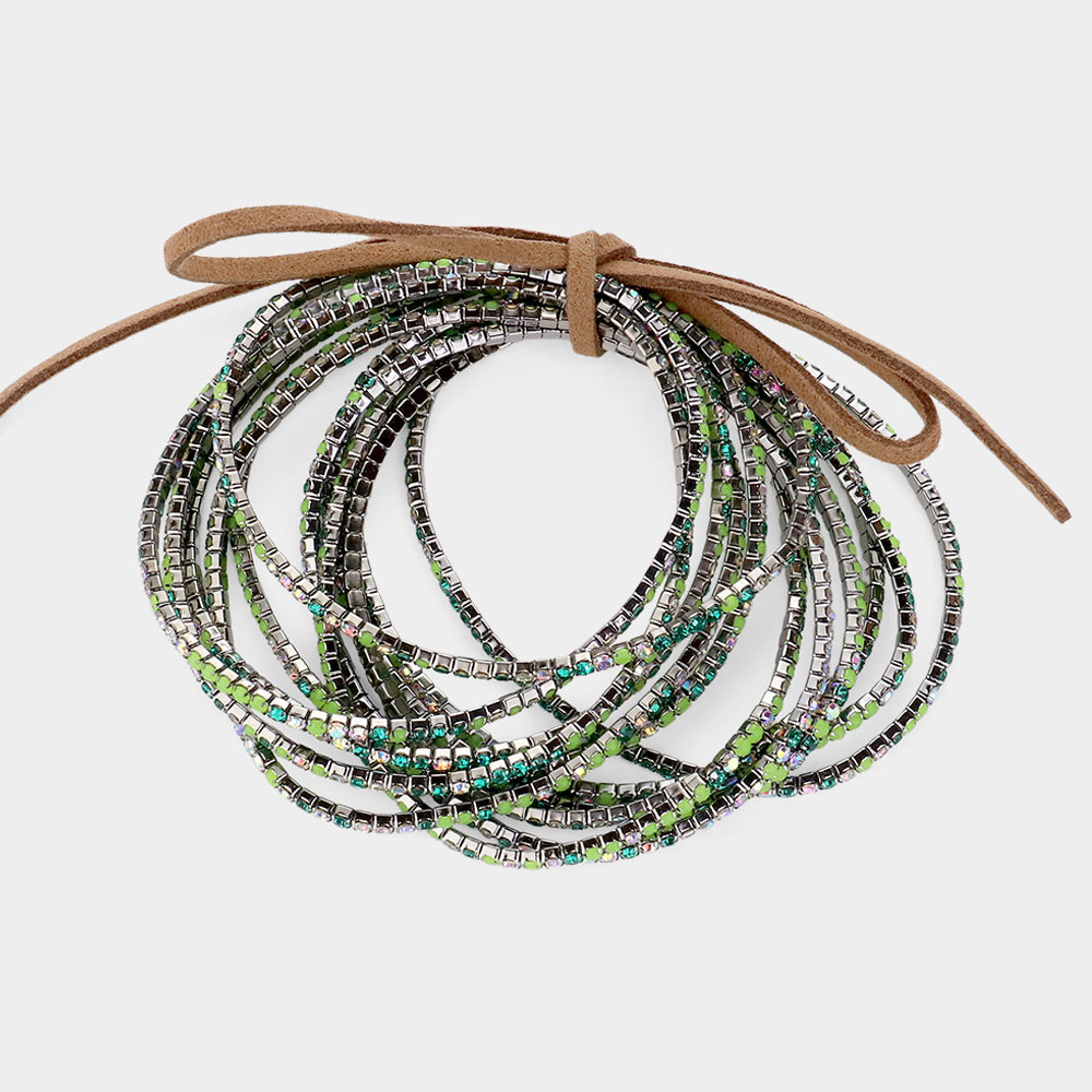12PCS - Ribbon Colorful Rhinestone Layered Stretch Bracelets