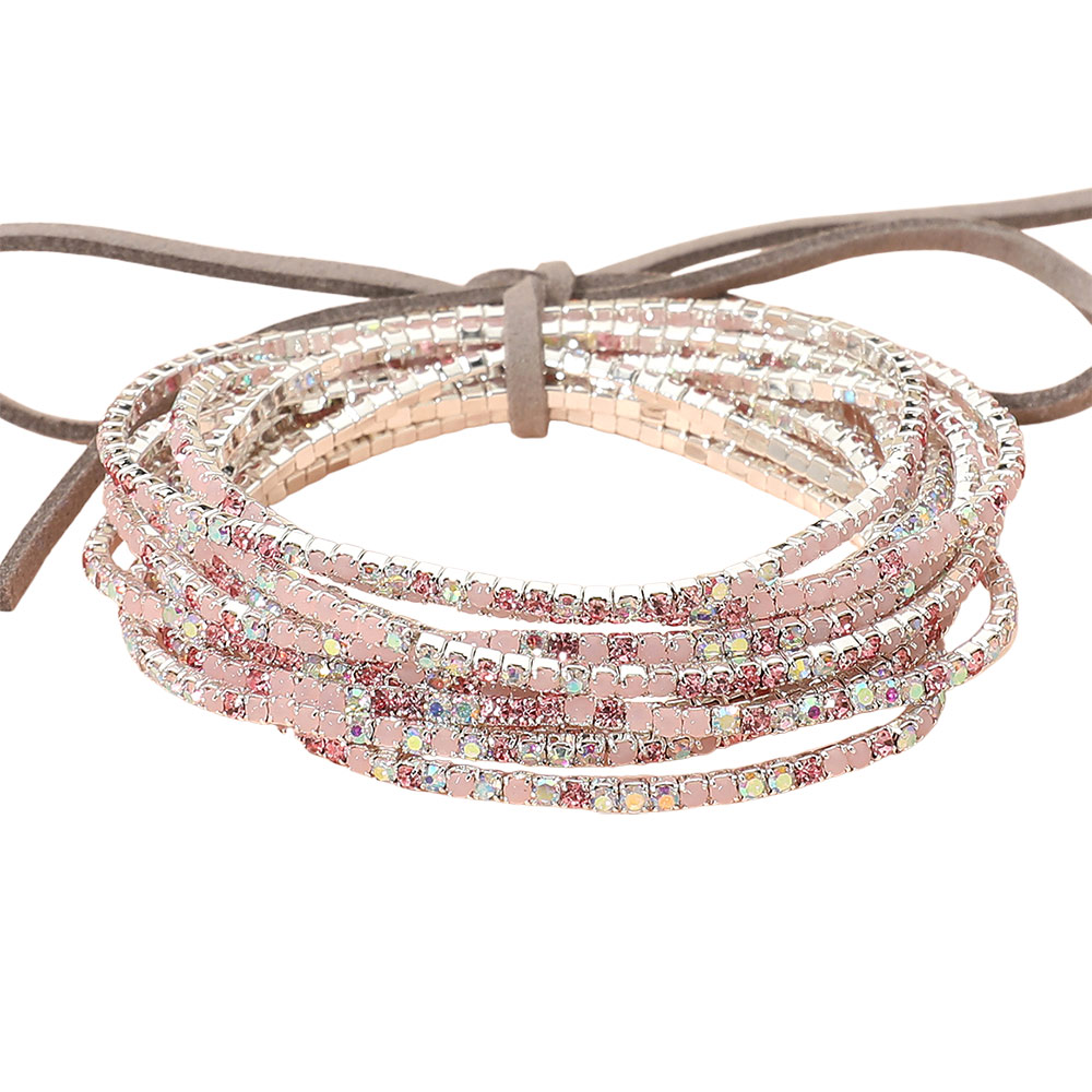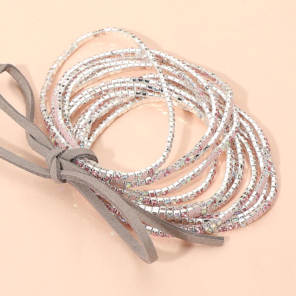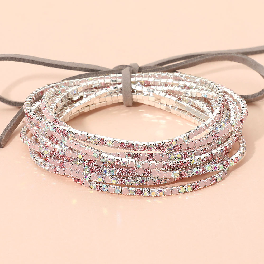 12PCS - Ribbon Colorful Rhinestone Layered Stretch Bracelets