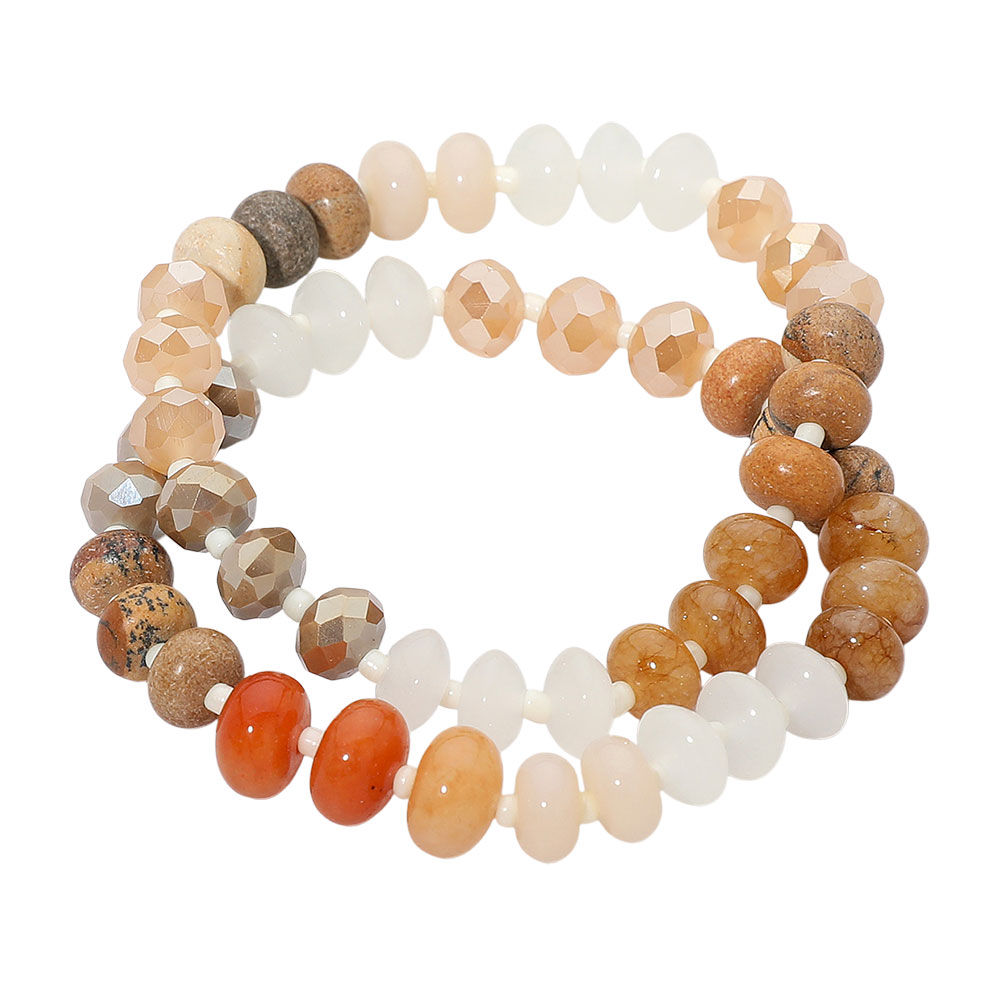 2PCS - Faceted Pebble Beaded Stretch Multi Layered Bracelets 2PCS - Faceted Pebble Beaded Stretch Multi Layered Bracelets 2PCS - Faceted Pebble Beaded Stretch Multi Layered Bracelets