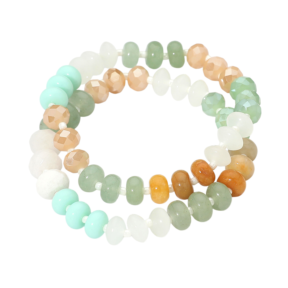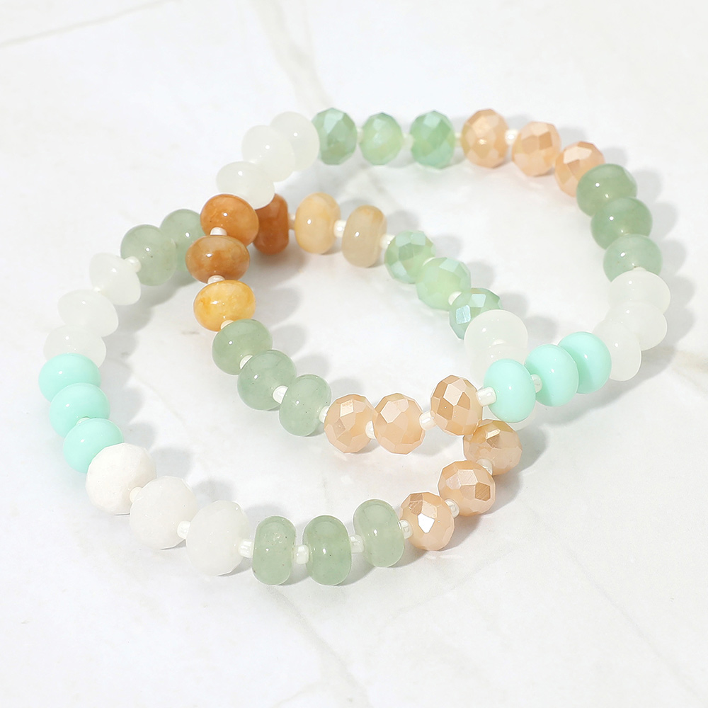 2PCS - Faceted Pebble Beaded Stretch Multi Layered Bracelets