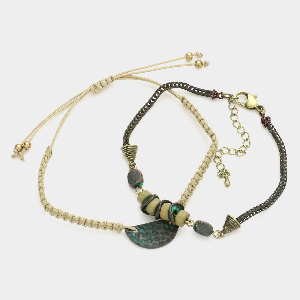 2PCS - hammered metal disc cinch bracelets